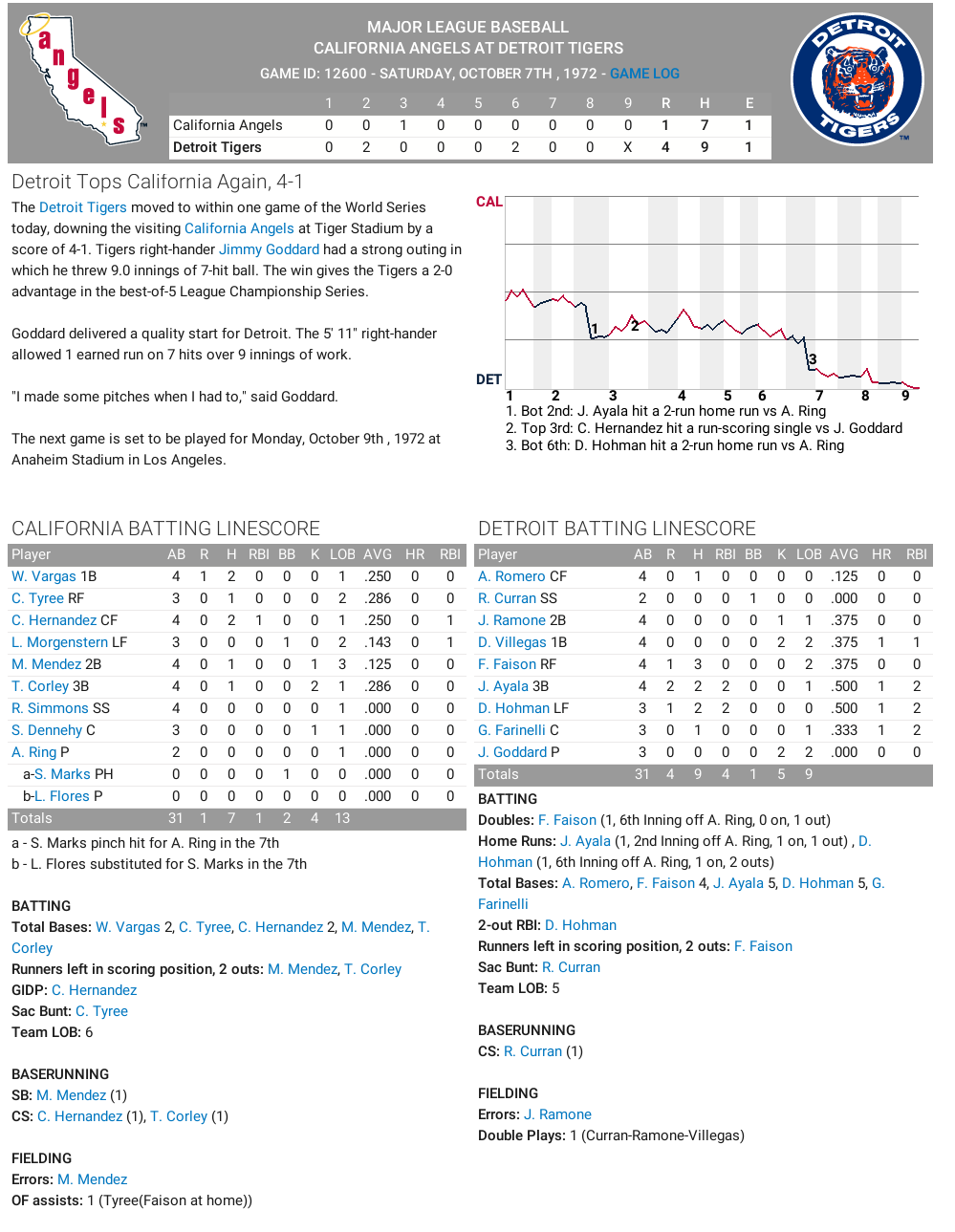California Angels (79-76) vs Detroit Tigers (95-61)