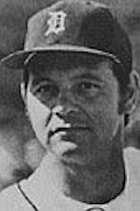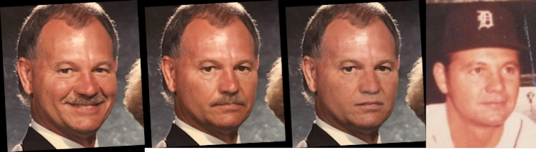 As a 28-year-old, he appeared in what was the entirety of his career during the Summer of 1971, seven games total, going 0-2 with a 5.63 earned run average in eight innings of work. Sadly, for him he wouldn't make it back to a Big-League mound again, toiling another three years in the Minors before calling it quits after the 1974 season, when he played in the Cleveland Indians system. All told, he put in 11 years as a pro, originally in the St. Louis Cardinals organization in 1964, but alas a Major Leaguer for just those seven games in August and September of 1971. - whentoppshadballs.com Having spent some time this morning researching him, he was clearly beloved by his family. They were kind enough to upload many pictures. To get the image I sought (the Tiger's picture) I used a photo of him after his playing days and removed the mustache.