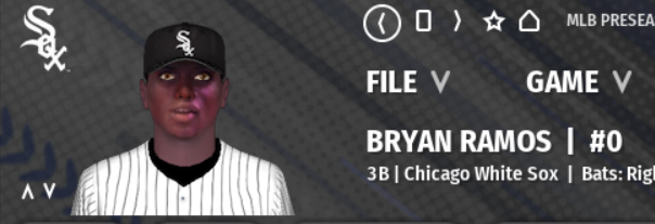 Ramos thrived in Cuba's 15-and-under league for two years before leaving the island, eventually signing with the White Sox for $300,000 in July 2018. He came to the United States for his pro debut the following summer and has been one of the system's most promising hitters ever since. A groin injury cost him most of the first two months of the 2023 season, but he returned to hit .271/.369/.457 with 14 homers in 77 Double-A games at age 21. Though he's aggressive and repeatedly has been young for his leagues, Ramos has shown the ability to hit the ball hard and drive it in the air throughout his pro career. His right-handed stroke has bat speed and loft and combines with his strength to create at least plus raw power, and he's able to tap into most of it. He has enough feel for the barrel to become a solid hitter as well if he can curb a tendency to chase pitches out of the strike zone. The White Sox love Ramos' makeup as much as his physical ability, and he has worked hard to improve his strength, speed and flexibility since turning pro. He has turned himself into an average runner and will flash solid speed once he gets going, though he's somewhat conservative on the bases. He has enhanced his range as well, becoming a solid defender at third base with arm strength to match, though his throwing accuracy can be inconsistent. -mlb.com I'm trying to get an updated pack out in the next 48 hours, but every time I think I am ready, there is one more debut or prospect that I look at that needs revision. Ramos debuted the other day. I apologize for this "before" facegen still existing. I wish I could audit the old CUF pack files for quality more quickly.