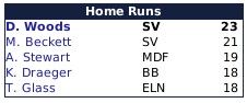 Monday, September 18, 2023 2023 Tycobbian Union Final Batting and Pitching Statistics TU Batting Title Belongs to Red Caps Hartwig Dennis Hartwig will look back at the 2023 season and smile proudly. The Oxford Red Caps rookie left fielder rapped out 197 hits and put up a .372 average. That was good enough to take this year's batting honors in the Tycobbian Union. The 21-year-old Hartwig ended the regular season with 38 doubles, 11 triples, 29 home runs, while scoring 138 times and driving in 90 runs. Last edited by Eugene Church; 05-15-2011 at 06:49 PM. |