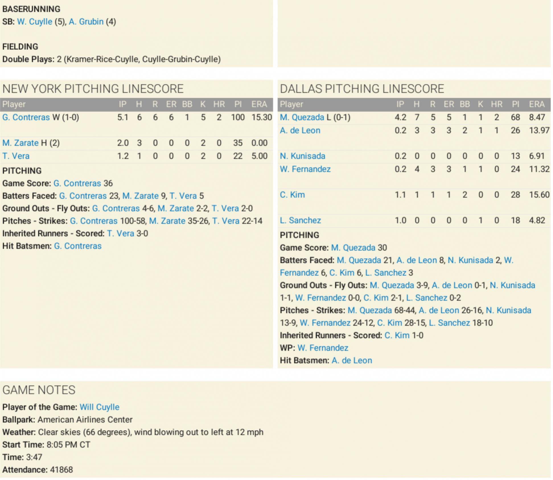 Written by Andrew Neiman (yes, that Andrew Neiman) Twenty-two runs. Twenty-two perfectly timed strikes on a drum that used to be Dallas. If Fletcher were here, he wouldn’t scream. He’d smile. Because this—this—was tempo. Control. Discipline. And rage. All of it, unleashed from the Rangers in the most brutal, methodical way I’ve ever seen. Look, I’ve bled on cymbals trying to prove I was good enough. But what New York did tonight? That wasn’t trying. That wasn’t hoping. That was proving. Barton Sattler didn’t just have a good game. He played like someone who was told he’d never make first chair. Two home runs. Four hits. Six RBIs. He was possessed. Like he had something to prove to someone who doubted him long ago. And he was loud. Every crack of the bat echoed like a snare being torn open. But it wasn’t just Sattler. Itsuro Bliebernicht hit a 3-run homer in the first. His hands? Calm. Eyes? Deadlocked. He went 3-for-5 with four RBIs and four runs scored. His swing wasn’t showy. It was precise. The kind of swing you only get after you’ve been told you’re never going to be great. The kind that comes from proving them wrong over, and over again. And then there was Mark Grubin, stepping in with 3 hits and 3 RBIs like it was a warm-up session. Kramer, Cuylle, Escandon, even Rice—they were all locked in. Like they were hearing a click track the Stars didn’t even know was playing. Dallas? Dallas was off the beat. Again. Just like yesterday. They had a spurt—four runs in the 3rd, three more in the 4th. R. Grubin hit two solo shots. Jabiri added one of his own. But it wasn’t conviction. It wasn’t discipline. It was noise. It was rushing. You don’t win when you rush. You just break down. And then came the fifth. And the eighth. New York didn’t just answer. They erased. Ten runs between those two frames. They could have stopped. But they didn’t. Because the best don’t stop. The best keep pushing. Until the blood runs. Until the sticks splinter. Until the crowd doesn’t know whether to cheer or cry. I’ve played in front of half-empty rooms. I’ve been told I’ll never be great. I’ve cracked my knuckles raw to chase down a moment like this—a moment where the music is exactly right. Where every hit lands like it’s meant to. Where the pain fades and all that’s left is performance. Tonight, the Rangers hit that moment. And the Stars? They were the kid crying behind the kit while everyone else packed up. Game 3’s in Dallas. They better find their tempo fast. Because New York isn’t slowing down. Not for anyone. |