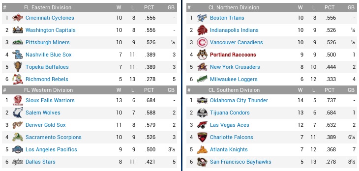 Raccoons (5-7) vs. Loggers (6-6) – April 17-19, 2029
