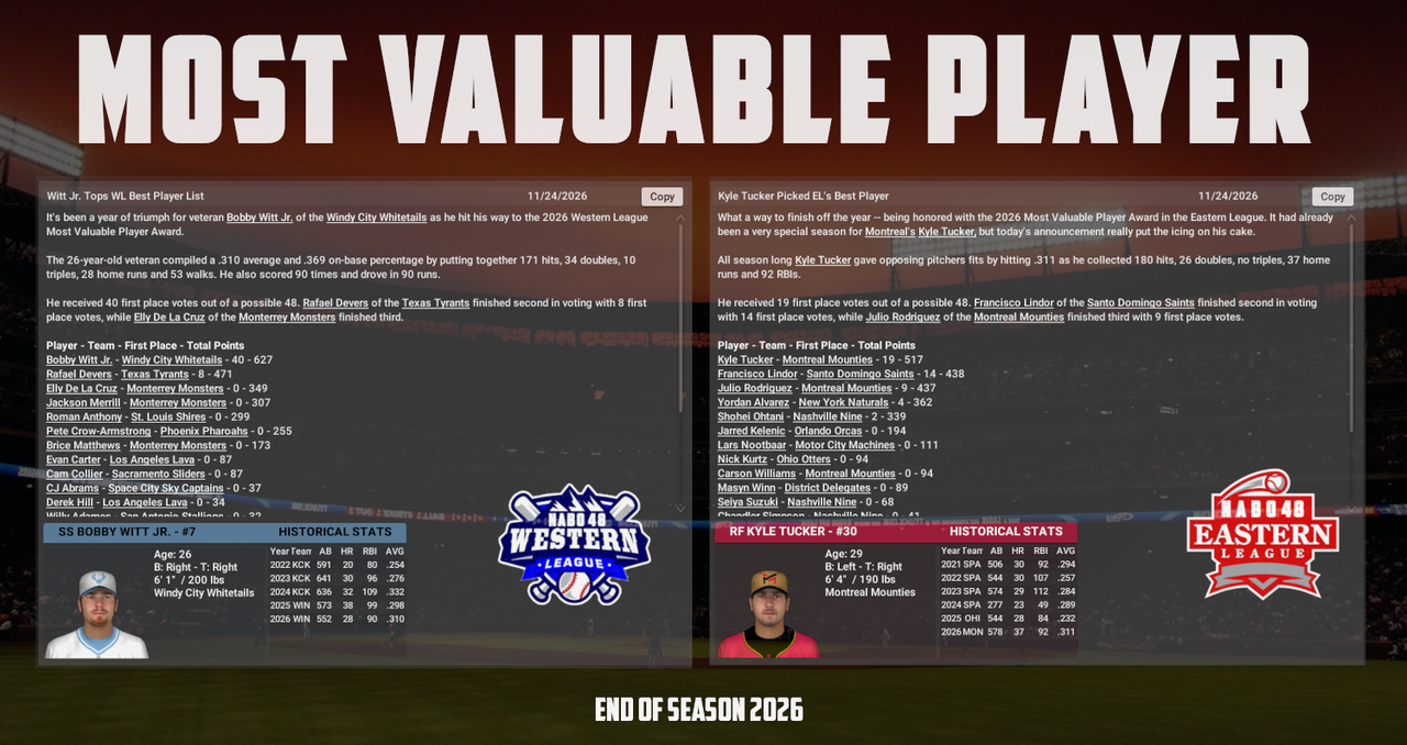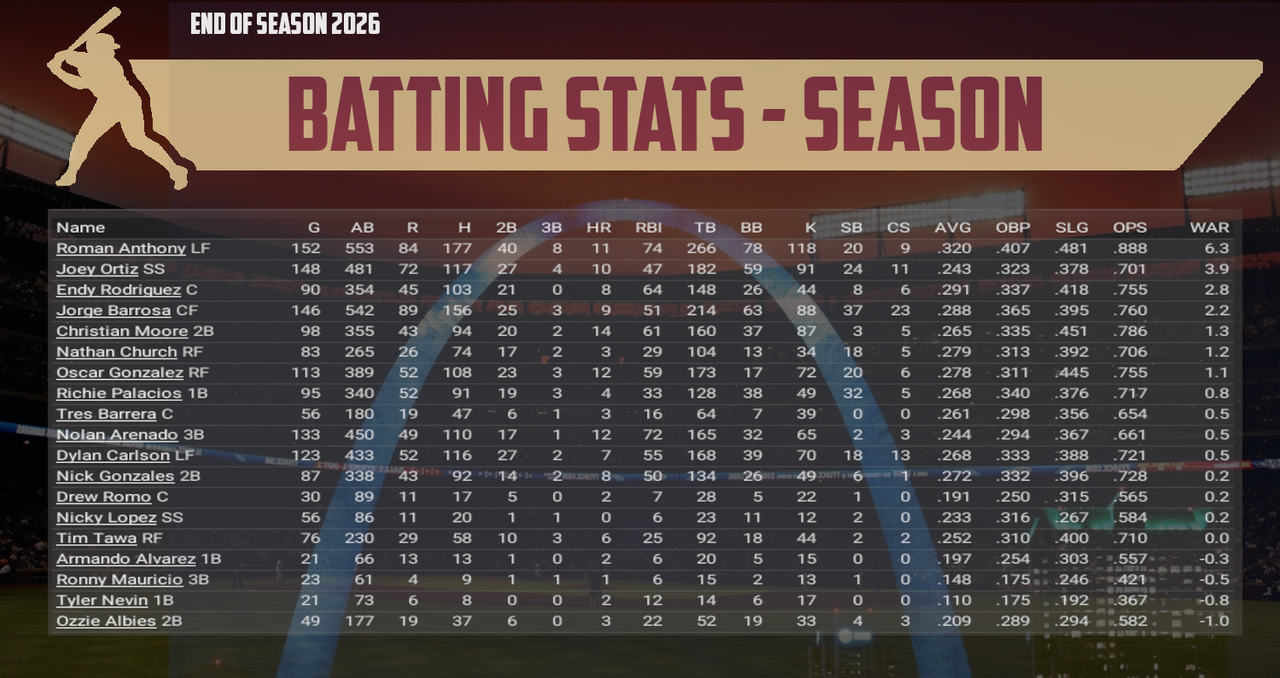 ![]() Going to go through each position player as a sort of end of the year review. I want to do an attempt at a "Media Guide" but I'll wait for 2027 to do that. Quote: