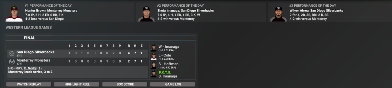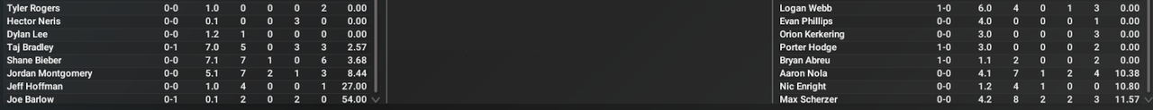 --------------------------------------------------- [1] H. Brown MRY - 12.5 [2] T. Skubal LAL - 12.4 [3] G. Rodriguez LAL - 11.7 [4] P. Skenes MEX - 11.6 [5] L. Webb StL - 11.5 [6] Y. Kiluchi TEX - 11.1 [7] S. Alcantara MEX - 11.1 [8] C. Burnes MRY - 10.6 Quote: