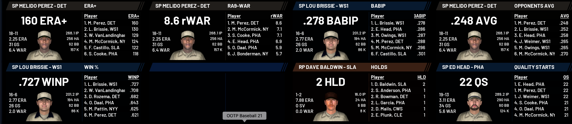 You're right, 33 WAR should have made him ineligible. I'd never heard of him before. Anyway, he's been in it from the start and has been steady but not dominant. He's 33 now and rating 50/50, so I'll let him play out.
