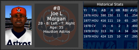 Joe Morgan (HOU) gets hit # 2000 Johnny Bench (KC) hits HR #300 Gary Alexander (SF) out for 9 months Moose Haas (MIL) out 5 months Fred Lynn (BOS) out 3 weeks Red Sox deal Jack Brohamer to Seattle for Bill Lee Indians send Steve Braun to ChiSox for Lamar Hoyt Brian Downing heads to Texas for David Clyde http://www.ootpdevelopments.com/boar...1&d=1355177981 http://www.ootpdevelopments.com/boar...1&d=1355177981 |