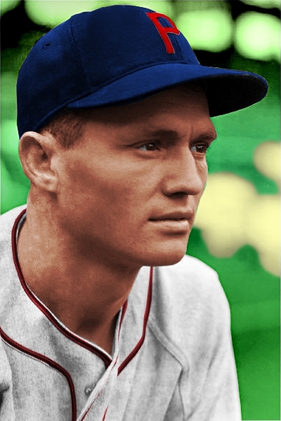 Joe Marty with the Philadelphia Phillies. The white 'P' is home, the red 'p' is away. I am still experimenting with the "color enhance" option. Thanks for the feedback, Nigel.