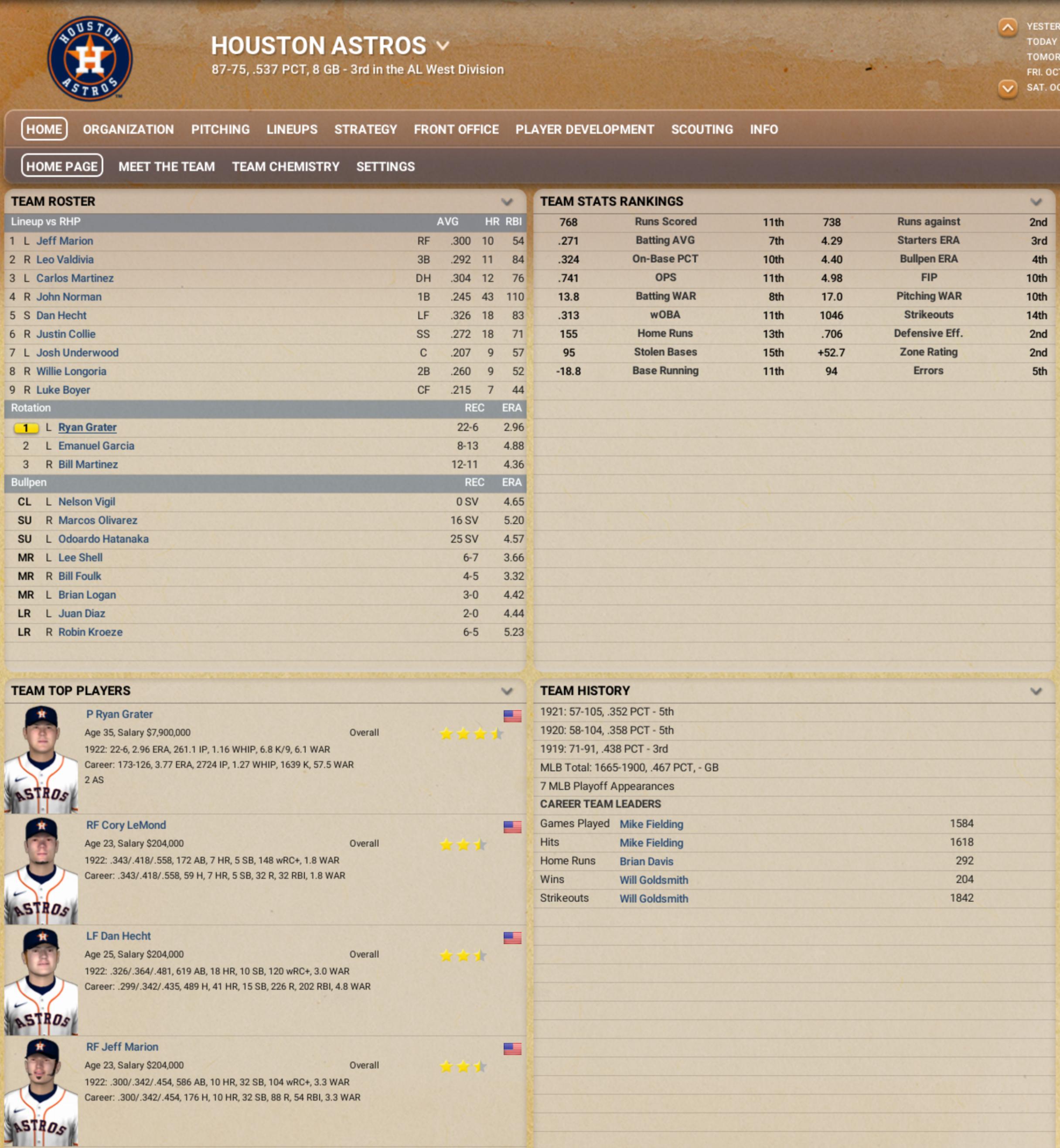 MAJOR LEAGUE BASEBALL — HOUSTON ASTROS AT TEXAS RANGERS, OCTOBER 4, 1922