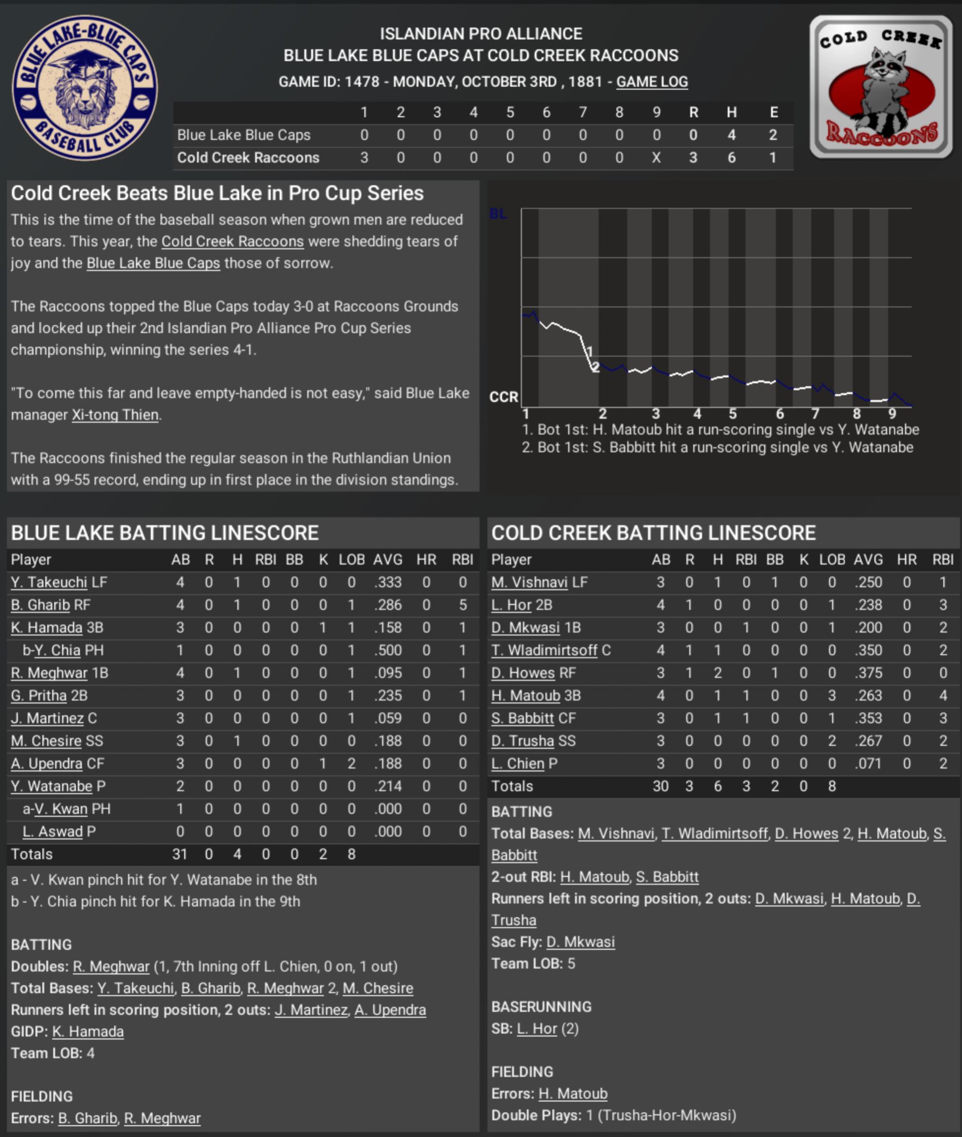 Cold Creek Raccoons: 1881 Pro Cup Champions (2nd title)