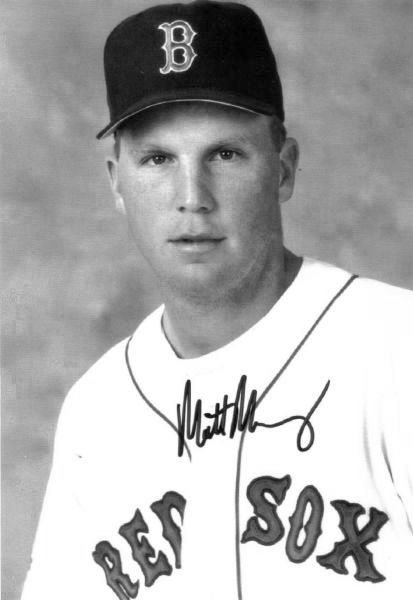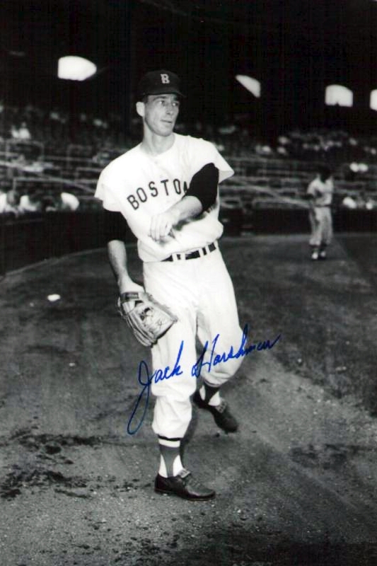 Mike Palm pasted a copy of this photo onto an index card which he autographed for me. The photo also appeared in The Sporting News issue of Nov. 17, 1948. It certainly looks like a Red Sox cap, but I can't guarantee that it's not Birmingham.