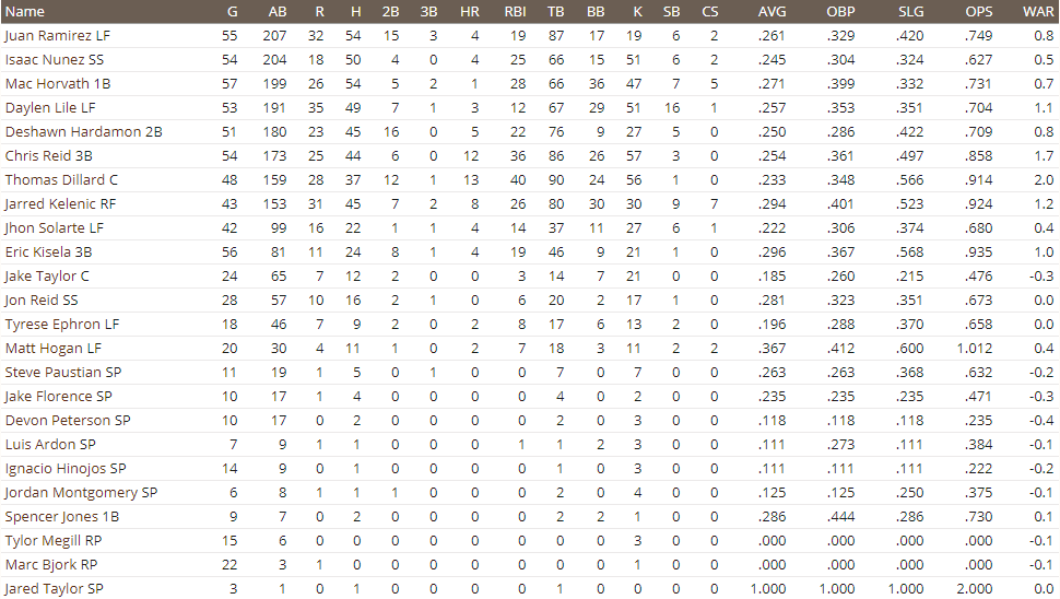 Down in New Orleans, Palban Gamboa earned more hardware, winning American Confrence Player of the Week. He hit .458 with 2 homers and 6 RBI's. The slugging right fielder is hitting .329/.388/.671 with 11 homers and 38 RBI's, and is pushing for a callup later in the season. Now 39-24, we dropped one spot to 4th in the Power Rankings. With the Brewers in town, Ignacio Hinojos (2-0, 3.77 ERA, 1.24 WHIP) pitched in front of a sold out crowd against the youngster Rodolfo Espinoza (4-0, 2.01 ERA, 0.81 WHIP) who's making his 2nd start of the season. We didn't defend home turf, and we were topped 6-2. Matt Hogan left with back tightness, and will be day-to-day for 5 days. Hinojos went 4.2 innings with 5 hits, 2 runs (1 earned), 3 walks, and 11 strikeouts. 11! Hogan allowed 3 hits and 2 runs in an inning with a walk and a strikeout. Riley Ferrell couldn't get an out, and allowed 2 hits, 2 runs, and a walk. Cho-yeong Hyoun tossed 2 innings with a walk and 4 strikeouts. Daylen Lile was 3-for-4 with a walk. Chris Reid was 1-for-4 with a double. Isaac Nunez was 1-for-3 with a double and sac-fly. Mac Horvath was 2-for-4 with a run scored. Jarred Kelenic was 1-for-4 with a walk and run scored. Jake Taylor was 1-for-3 with a sac-fly. I optioend Hogan to AAA, and purchased the contract of the red-hot Palban Gamboa. Blue Jays 1B Greyson Jenista was 5-for-6 in a 9-7 win over the White Sox. June 15th, 2027: We looked to even the series back up with Jake Florence (5-4, 3.26 ERA, 1.22 WHIP) taking on Blake Bivens (5-2, 2.76 ERA, 1.26 WHIP). Today, we have the position advantage at all spots in the order (all, but 1 yesterday), but we still lost 4-1... Florence went 5 with 6 hits, 4 runs, 3 walks, and 5 strikeouts. The pen combined for 4 innings with a hit, 2 walks, and 2 strikeouts. Isaac Nunez was 1-for-3 with a walk, run scored, and steal. Thomas Dillard was 1-for-4 with a double. Daylen Lile was 1-for-4 with a double and RBI. Braves SP Ken Harty tossed a 6-hit shutout in a 9-0 win over the Padres. He struck out 6 and walked 1. Blue Jays CF Ron Burk's hit streak was ended at 21 in a 5-4 win over the White Sox. June 16th, 2027: Tylor Megill will beging a rehab assignment in AAA. Yankees RHP Nick Pogue is out for the eyar wtih a damaged elbow ligament. The 27-year-old was 3-2 with a 3.44 ERA and 26 strikeouts in 34 innings. We looked to avoid the sweep with Steve Paustian (5-4, 3.78 ERA, 1.32 WHIP) taking on Alfredo Rivera (5-3, 5.17 ERA, 1.29 WHIP). Thankfully, I didn't have to deal with getting swept at home, and a five run first was enough for the 6-2 win. Paustian went 6.2 innings with 4 hits, 2 runs, 2 walks, and 11 strikeouts. Jared Taylor and Luis Alcantra combined for 2.1 innings with a hit and 2 strikeouts a piece. Isaac Nunez was 2-for-5 with a solo homer. Thomas Dillard was 1-for-4 with a run scored and steal. Jarred Kelenic was 1-for-2 with 2 walks and a run scored. Juan Ramirez was 1-for-3 with a walk, run scored, and RBI. Paustian was 1-for-3 with 2 RBI's. Tomorrow is an off day before the Cardinals come to town. June 17th, 2027: Athletics 3B Ryan Vilade hit thre homers in a 9-7 win over the Yankees. Twins 1B Lucius Fox was 5-for-5 as they edged the Phillies 11-10. The Cardinals come to town for three, and we'll see Ben O'Neill (0-1, 9.72 ERA), Logan Gilbert (6-4, 3.58 ERA), and Eric Webster (2-3, 3.91 ERA). June 18th, 2027: The Padres sent RHP Chris Rodriguez to the Giants for RHP Juan Trejo and RHP Sam Orellana. I like this deal for the Giants. The Nationals sent 1B Anderson Franco to the Rays for RHP Jose Almonte and 3B Shamel LeSane. I love this deal for the Rays. We opened the series hosting the Cardinals with Luis Ardon (5-2, 2.70 ERA, 1.14 WHIP) facing Ben O'Neill (0-1, 9.72 ERA, 1.80 WHIP) in a must-win opener. We have the better player nearly everywhere on the field, but we still lose 4-2 as we've had a rough stretch as of late. Ardon went 5.1 innings with 7 htis, 3 runs, 2 walks, and 7 strikeouts. Luis Alcantra allowed a run off 2 hits in 2 innings with 2 strikeouts. Thomas Dillard was 3-for-4 with a double, run scored, and RBI. Daylen Lile was 1-for-5 with a run scored and his league leading 18th steal. Isaac Nunez was 1-for-4 with a double. Chris Reid was 2-for-3 with a walk. Jhon Solarte was 1-for-4 with an RBI. Indians 1B Anthony Rizzo hit his 400th career homer. He got his 2,000th career hit not to long ago, but at 37, he's really struggled, hitting .193/.261/.337 with 7 homers and 23 RBI's. This will liekly be his first negative WAR season since 2011. June 19th, 2027: We looked to even the series back up with Devon Peterson (6-4, 5.58 ERA, 1.59 WHIP) taking on Logan Gilvert (6-4, 3.58 ERA, 1.19 WHIP). We have the advantage in every opsition today, but I doubt it will do us much good. I was partially wrong, and we won 4-2 to at least avoid getting swept at home. Peterson looked great, 6 innings with 1 hit, 1 run, 2 walks, and 7 strikeouts. Ernesto Estrella and Riley Ferrell earned holds before Alpha Quivers got the save. Quivers allowed a solo homer in the 9th. Eric Kisela was 2-for-3 with 2 doubles, a run scored, RBI, and hit by pitch. Thomas Dillard was 2-for-3 with a run scored, walk, and steal. Daylen Lile was 2-for-4. Isaac Nunez was 2-for-4 with an RBI. Jarred Kelenic was 1-for-3 with a walk and run scored. Deshawn Hardamon was 1-for-3 with an RBI. More milestone homers today: Red Sox 1B Cody Bellinger hit his 500th and his teammate 1B Rhys Hoskins hit his 400th. I don't think teammates have ever hit milestone homers on the same day. June 20th, 2027: Fan vote update: Dillard 2nd. Kelenic 2nd. Quivers 2nd. Palban Gamboa made his debut in the series finale between Ignacio Hinojos (2-1, 3.60 ERA, 1.28 WHIP) and Eric Webster (2-3, 3.91 ERA, 1.55 WHIP). Former Marlin Rodolfo Medrano hit a solo homer in the 1st, but luckily that's the only hit and run the Cardinals would get, and we won the finale 6-1. Hinojos went 6 innings with just the 1 hit and run to go with 10 strikeouts and