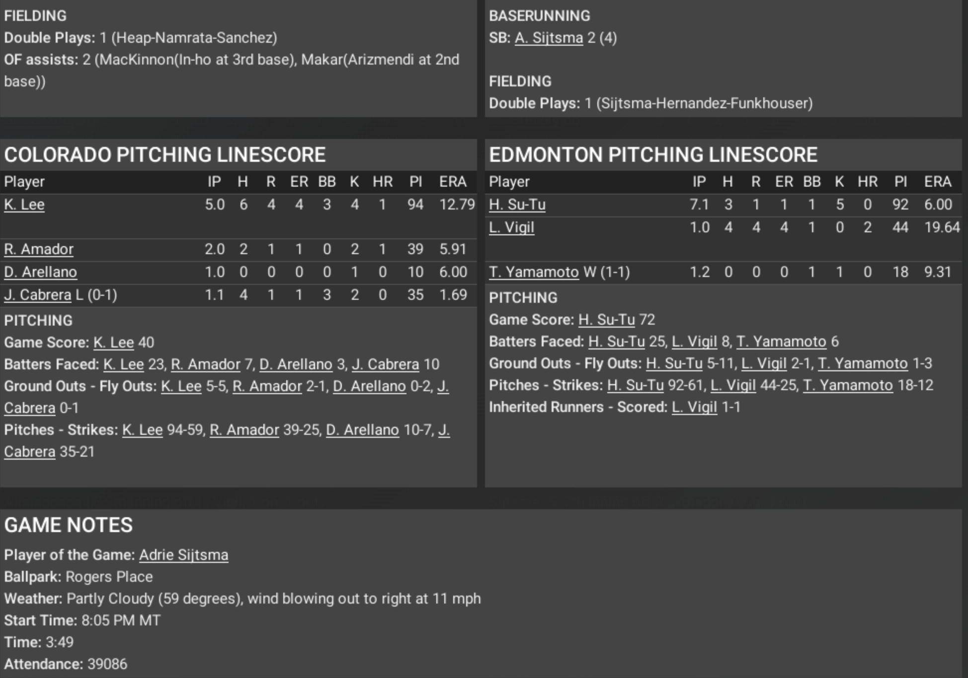 With the sun long set behind the Rockies and 51,561 fans bundled up against a light, misting rain, the Edmonton Oilers took the field at Ball Arena knowing exactly what had to be done. Down three games to two in the series, it was win… or go home. And tonight, they played like a team that planned to keep the lights on a little longer. Shuhei Kunda, the left-hander, was simply marvelous. Seven innings. Four hits. One earned run. A steady heartbeat on a night that demanded it. “You could almost hear the rain tapping his cap brim between pitches,” Vin would muse. “And all he did was keep making Colorado tap the ball softly.” The Oilers struck first, and they struck loud. In the top of the first, a leadoff double, a triple into right-center, and before the Avalanche faithful could even settle in, the score was already 3–1. Then came the second inning. A one-out, hanging sinker from Alexis Castaneda… and Adrie Sijtsma sent it soaring into the night. A two-run homer. “Oh, and you could just tell as soon as he hit it. He didn’t run. He admired. A moment like that, in October… you earn it.” It was 5–1, and the tone was set. Colorado, to their credit, never quit. Nathan MacKinnon tripled early and homered in the ninth to keep the Avalanche within shouting distance. And J. Sanchez — what a series he’s having — crushed his eighth home run in the eighth inning, trimming the deficit. But every time Colorado got close, Edmonton found a way to lean back on its pitching. Romo held the line, Yamamoto — with a touch of drama — sealed it. “If you’ve ever seen a heart skip a beat, you saw it there with two outs in the ninth,” Vin might say softly as MacKinnon’s drive sailed deep… and died at the track. “And the Oilers’ season lives to see another night.” A final score of 6–4. Ten hits to seven. One team forcing a Game 7. One team heading north with hope. Player of the Game: Shuhei Kunda — calm, precise, and brilliant when it mattered most. Next Stop: Rogers Place. Tuesday night. A winner-take-all Game 7. *“And as they say,” Vin would smile, pausing just long enough for the crowd noise to swell, “there’s nothing quite like October… when everything comes down to one game.” |