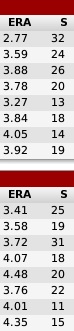 Monday, June 1, 2037 EP PANTHERS LEAD TUCKS BY A GAME IN TU EAST The cream has risen to the top in the Tycobbian East pennant race... East Point and Tuckanarra look like the only challengers as the High Mesa Cowboys came down-to-earth in May after being in a three-way tie for the top spot the first month of the season... the Panthers were 18-10 in May to take a one-game lead over second place Tuckanarra... the Blue Jays were 17-11 in the second month, while the Cowboys were bucked out of the saddle with a dismal 9-19 mark and tumbled down to fourth place, 9 games off the pace... Ozarka, the preseason favorite in THE ISLANDIAN TIMES poll, rebounded to third place after a poor opening month... the Naturals climbed up to the .500 mark, but are seven games behind East Point... the Nats posted a 16-12 record in the last month... the rest of the TU East are way below .500 and can pretty much forget about this year. East Point (33-19) hits with power, can score and has very good starting pitching... however, a bad bullpen is their sore point... the Panthers have a formidable foursome in Dixie Brooks (7-3/2.71), Johnny Moore (7-3/2.54), Frank Blair (6-2/3.26) and Burton Cook (6-7/3.48)... they just need some help from the relief corps (6.51 ERA-31st)... Brooks and Blair could both reach the 200-win milestone this season... the IPA home-run leader Dean O'Donnell heads up a power-packed lineup that includes Karl Jankauskas (.226) with 14 HRs and 40 RBIs, and Tetsu Tanaka (.260) and Chris Cardinale (.234) with 10 each... O'Donnell has 19 with a .332 BA, 42 RBIs and 41 runs... Ricky Arnold (.329) is the only other .300 batter... the Panthers are hitting only .255 (23rd), but are number two in the IPA with 88 roundtrippers, topped only by Sugar Valley of the Ruthlandian East with 89... East Point is in it for the long haul and should give Tuckanarra and Ozarka a tussle for the division crown... Ozarka was the critics' choice with the Blue Jays second and the Panthers third... the stage is being set for a dynamite three-way battle for the flag and the playoff spot... the Tycobbian East should be a fan pleaser. The Tuckanarra Blue Jays (32-20) have won the last three pennants by double-digit margins and they may be even better this year with improved hitting... the Tucks are tops in the IPA with a .291 BA and 302 runs and rank fourth in homers with 69... only Sugar Valley outscores them in the IPA... the Rattlers have rung up 339 runs... iconic slugger Lorne Evans is off to another fine season with a .327 mark, 15 HRs, 36 RBIs and 44 runs... John Paul has chipped in with 16 HRs, 35 RBIs and a .298 BA... steady Eddie Darby (.296) is still a solid defender and good contact hitter at age 34... Tuckanarra uses a lot of platoon players... Andy Pearson (.397), Nicky Weill (.295) and Cliff Winter (.317) are playing their roles well... vets Josh George (.258) and Spade Weldon (.263) have had slow starts this year... the team ERA is 3.32 (5th) with three strong veteran starters in Jeff Buttrum (6-4/2.38), Junior Bristow (8-3/2.80) and Bobby Reid (7-3/3.24). The Ozarka Naturals (26-26) got off to a slow start, but improved in recently weeks... the Nats came in a distant second to Tuckanarra the last three years, but improved pitching is supposed to make them a serious challenger... the team ERA is a rock-solid 3.06 (3rd)... the club has a strong bullpen with a 2.30 ERA (3rd)... but they are not much offensively with a .266 BA (13th), only 39 HRs (28th) and 229 runs (24th-tied)... leading the mound staff are starters Glen Jenkins (7-6/2.40), Leon Bernard (5-5/2.38) and Zenon Metaxis (7-3/3.44)... not much in the way of bats... Gunnar Norheim (.333), Sid Elmore (.314) and Duffy Morrison (.314) are the club leaders, but none have any power... Ozarka was the preseason favorite, but they don't really look in the class of Tuckanarra and East Point... third place is the most likely finish... they just don't have much offense. The High Mesa Cowboys (24-28) were really on a high in April, but flopped badly in May... in a month they have fallen from first to fourth and now trail by 9 games... maybe May was the real Cowpoke club... the pollsters put them in last place in the preseason guesses... they now rank near the bottom in batting (.250) and pitching (4.57 ERA) and could be headed for the cellar... the run producers are Corbett Brooks (.254) with 15 HRs and 37 RBIs, Michael Page (.281) with 13 HRs and 31 RBIs and Clay Johnston (.317) with 12 HRs and 33 RBIs... and Dean Harris (7-1/3.42) and Max Jung (7-6/4.26) lead the pitchers. The fifth place Red Bluff Red Sox (20-32) don't do much except hit homers... they are third in the IPA with 86... David Kelso (.276) is the club leader with 18 HRs and 47 RBIs, which is tied for second in the IPA HR race and tied for fourth in RBIs... Gene Bates (.256) has 15 HRs and 36 RBIs, Fran Blanchard (.254) has 13 HRs and 30 RBIs and Garris Aiken (.269) has 10 HRs and 22 RBIs... Jimmy McMillan (7-3/3.15) and Bazuki Hasegawa (5-5/2.98) are the pitching leaders. The South Fork Stallions (19-33), Midway Wolves and Hillsboro Blazers are tied for last place, 14 games back... the Stallions are hitting .260 (18th) with a 5.47 ERA (32nd)... Paul Sexton (.325) and Elton Jacoby (.312) are the club leaders at the plate... Chris Sorensen (5-5/3.90) is the only decent pitcher... looks like a long season for the Stallions. Midway (19-33) is in the same boat as South Fork with a lot of mediocrity... the Wolves have a .254 team BA (24th) and a 4.37 team ERA (26th)... Bobby Dorignac (4-7/3.66), John Anderson (5-7/3.87) and Cary Snead (4-5/3.93) are fair pitchers... rookie Yuma Chandler is the one bright light on the team with a .391 BA in a parttime role... Chandler recently was made the full-time CF. Hillsboro (19-33) is plain bad, too... with a horrific .227 BA (32nd), by far the worst in the IPA... and a 4.25 team ERA (25th)... Lucky Luciano (4-0/2.91) has been excellent in the bullpen... the only st