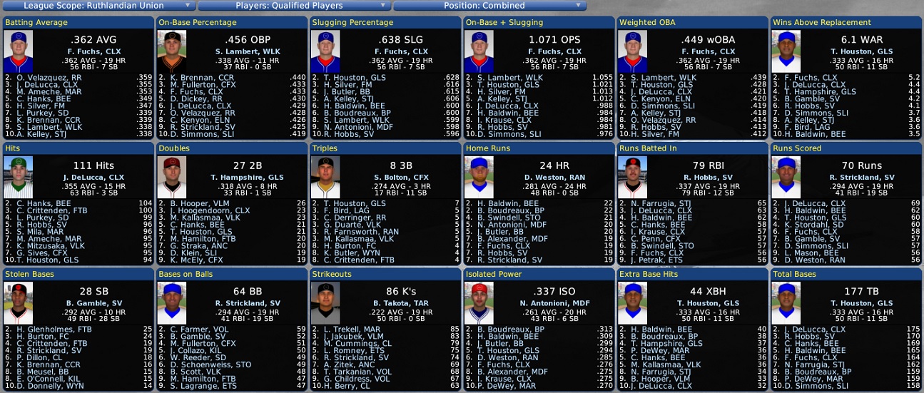 2038 Ruthlandian Union Final Individual Batting and Pitching Leaders