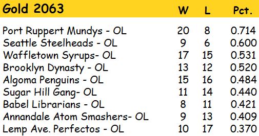 I took a sneak peak and hope that, with 10 of the 16 at home, the Mundys won't pull another late season fade, as they did last season and at least three or four other OL seasons in PT 22. Not only did my bronze teams end up off by themselves, but they were put in the same division so my hope for another world series tiff is off the table. Of course, they do each get 19 games against an OL team.