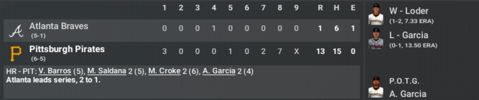 Bob Costas (opening) “On a crisp October afternoon in Pittsburgh, the Pirates delivered not merely a win, but a statement. A 13–1 dismantling of the 111-win Atlanta Braves. Angel Garcia, with two majestic home runs, five driven in, and the sense—however fleeting—that an entire ballpark was levitating with each swing. For a team that was humbled in Games 1 and 2, this was a response rooted in pride. A reminder that baseball, unlike almost any other sport, can pivot entirely on a single afternoon. Atlanta’s dominance all season long now feels, just a bit, like something that can be challenged. The brilliance of T. Loder over seven innings steadied the entire Pirates dugout. And remarkably, Pittsburgh lives in this series." Mike Francesa "Listen, this was a beatdown. A total, absolute, no-doubt-about-it beatdown. The Braves looked asleep. I mean, come on—six hits? One run? You win 111 games and this is what you show up with in Game 3? Loder dominated ’em. Pittsburgh hit everything in sight—Garcia, Croke, Saldana, Barros… it was a home-run derby. It coulda been 20-to-1 if we’re being honest. And Atlanta—WAY too many guys leaving runners everywhere. Eleven men left on base. Eleven! You’re not winnin’ postseason games like that. I’m tellin’ ya right now: if the Braves don’t show up tomorrow, this series is tied, and suddenly all that ‘greatest regular season ever’ talk… it’s gone. Just gone." Colin Cowherd “This is classic Atlanta. Classic. They’re the most talented roster in baseball—no argument. But they’ve also got what I always call ‘country club tendencies.’ When things are easy? They’re unbeatable. When someone punches them in the mouth? Well… today you saw it. They folded. Pittsburgh? Pittsburgh’s different. They’re gritty, they’re tough, and they’ve got urgency because this core never feels like it’s supposed to be the best team in the league. Angel Garcia today looked like a superstar who takes slights personally. Atlanta? They looked like a team upset their hotel breakfast wasn’t organic. I’ll say it right now: Game 4 tells us who the Braves really are. If they win, this was just a blip. If they lose? That 111-win season becomes empty calories—like one of those big Instagram salads that looks nice but has no protein." Mad Dog Russo “HO-HO-HO! WHAT A GAME AT THE CONFLUENCE, BABY! The Pirates absolutely BLASTED the Braves! They hit MORE HOME RUNS THAN MOST TEAMS HIT ALL WEEK! The Braves pitching? OH, PLEASE! H. Garcia—ARE YOU KIDDIN’ ME!?—three home runs allowed, balls FLYIN’ OUT LEFT AND RIGHT! Lomeli comes in—BOOM BOOM BOOM! Another three homers! It was like batting practice in the eighth inning! And give Pittsburgh credit! Croke! Saldana! Barros! And Garcia with the TWO BOMBS! The place is ROCKIN’! Now listen… Atlanta’s gotta wake up! You can’t just walk into Pittsburgh and expect them to roll over! This ain’t the 1927 Reds they’re playing! This is a good Pirate team! You better show some HEART if you’re the Braves, because you ain’t winnin’ ANYTHING playing like that!” |