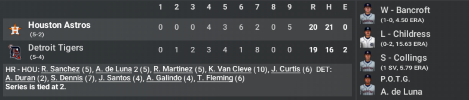 ⚾ POSTGAME PANEL — TIGERS 14, ASTROS 12 (Series tied 1–1)