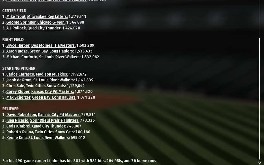 This 18-inning game was one of the longest I have played, I can only remember a few that may have equalled it in the 1,000s of games. The Walkers won in the bottom of the 18th inning when Andrew Benintendi led off with a single off Danielson Lamet. A walk to Rhys Hoskins moved him to second. A Michael Conforto sacrifice fly moved Benintendi to third and chased Lamet, in favor of Jameson Tallion. A walk to Nicky Delmonico loaded the bases. St. Louis won it when Adeiny Hechavarria singled to right field. (Note: Why is it, when you're on a plan to play x-number of games in a day, it goes smooth and you are ahead of schedule, so you play one more, and that's when you get that 15-inning plus marathon?). |