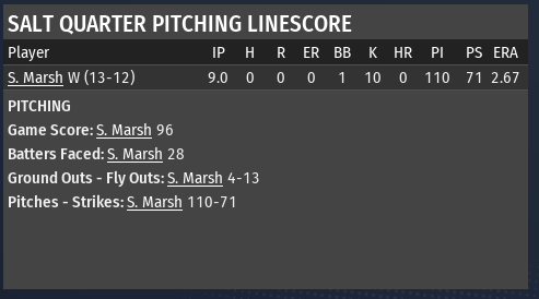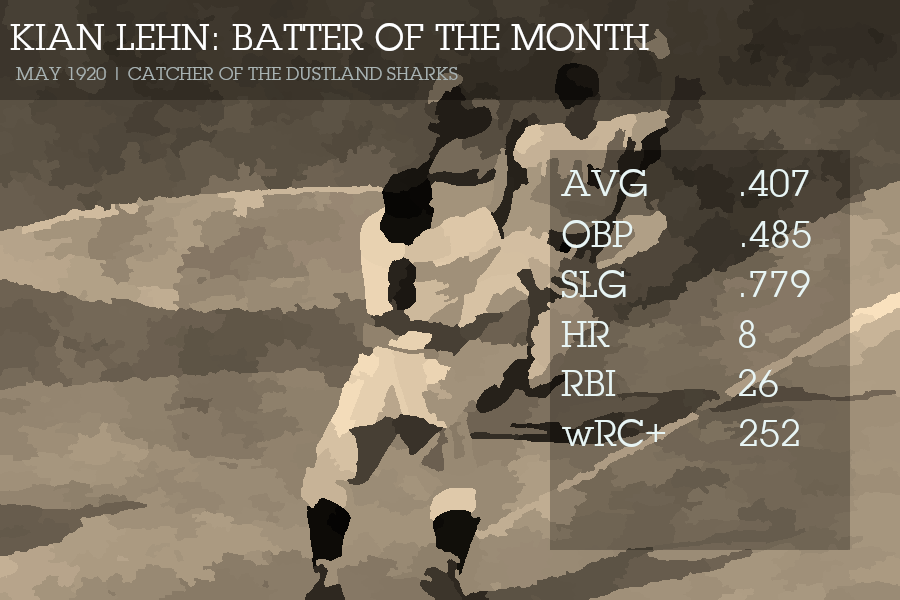 Dustland's Jaxon Darnall has been on an absolute tear lately. It was only on the 8th that he pitched the league's first no-hitter and he followed that up with a complete game shutout against the Saffron Turtles. He actually hasn't conceded any runs (earned or unearned) in the last 30 innings. Well, he's just locked in his future with the Dustland Sharks by taking himself out of the upcoming free agent market with a $95k/5yr deal. That'll make him the highest paid pitcher in the land when it takes effect in 1921. That final year does have a vesting option: requiring 200 IP in 1924. He's 32 now so probably a smart move from Sharks management. So far this season, Darnall is 10-1 over 11 starts. He's got 1.01 ERA, 0.82 WHIP, and 2.08 FIP. His ERA+ is an insane 402. He's already got 4 complete game shutouts under his belt, including the no-hitter from last week. The slash line against him looks like .160/.221/.209. 14 May, 1920 The Amelia City Metros picked up a rare win on the back of a 16K performance from Jeremiah Hinton against the Hadestown Broncos. I thought this was a record but it turns out Max Steel also got 16K for the Roosters in a loss to the Northlands Polar Bears the same day that Jaxon Darnall got his no-hitter and I missed it. Sorry Max! ![]() 15 May, 1920 We had two games go into extra innings today, both with a player getting three home runs. The first between the Sharks and Polar Bears saw the Sharks take a 7-1 lead by the end of the 2nd. But Sharks Catcher Kian Lehn isn't one to give up so he hit a home run in the 3rd, 4th, and in the 9th to tie it all up at 10 runs apiece. Lehn was also on base when 3B Carl McNutt sent a home run into the stands in the 11th. The Polar Bears got another run at the bottom of the inning but it was too late. ![]() The second game was between the Port Magnolia Dolphins and the Spice District Roosters which needed 15 innings to come to a winner. Roosters RF Roman Karabanov was in the right place at the right time for each of his home runs. His first in the 6th helped the Roosters keep pace with the Dolphins, his second in the 10th forced more innings and his final blast in the 15th was the walk-off. ![]() 16 May, 1920 The Spice District Rooster's hold on the East Division just got tenuous as they confirm they'll be losing their big hitting CF Johnny Pfeifer for the rest of the season with a broken kneecap. The 30 year old has been on a tear this season, slashing .305/.387/.695 over 38 games with 17 home runs. Good enough for second place in the home run charts. He was actually projected to hit 57 at that rate. His biggest game of the year was his 3 home run/7 RBI haul in a 8-1 victory over the Crimson Forest Falcons at the start of this month. His efforts overshadowed by Max Steel, who picked up 15 strikeouts that game. His replacement, Camden Jones, will be an improvement defensively but he doesn't offer much with the bat. 17 May, 1920 Slightly more than a month until the All-Star game and we've just got the first batch of voting results in. Voting stations have been set up across Amelia, from the coffee houses to the whiskey houses. Whiskeytown Catcher Joel De Vries is dominating the voting with 26,323 votes so far. The next highest is his teammate, 1B Vladik Zavalin with 20,863. 19 May, 1920 Speaking of catchers. Dustland's Kian Lehn is putting up a strong claim as the best catcher in the game. In fact, he's currently on a 20 game hit streak. The 23 year old is currently slashing at .413/.489/.716 with 10 home runs and 15 doubles doing wonders to that slugging. ![]() 22 May, 1920 Big blow to the Sugar Factory Elephants as they lose their #1 starter, Connor Kyle to elbow ligament reconstruction surgery. He'll be out for 14-15 months. Kyle is only 25 years old so plenty of time to bounce back. His numbers haven't been great, a 6-5 record with a 4.11 ERA and 1.29 WHIP. That's good enough for 105 ERA+ but his FIP has been outstanding at 2.69 with a FIP- of 62 so it's likely the ERA numbers aren't telling us the whole story of what's going on with the Elephants. Here's where the standings sit before the games of 22 May. The Roosters have a small lead in the East Division over the Elephants but then there's a fair bit of daylight before the next set of teams. Over in the west, the Saffron Turtles lead has diminished among strong performances from the Sharks and Penguins.