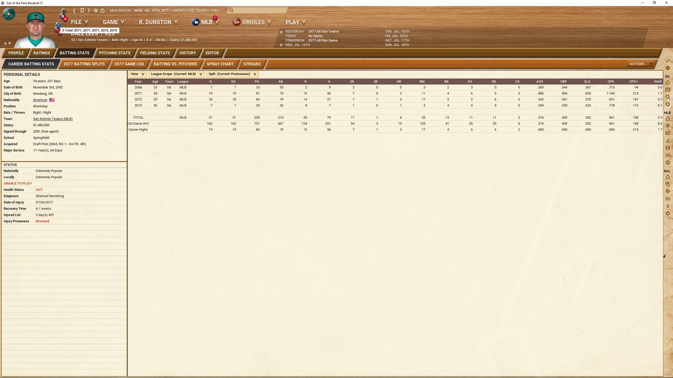 In 2071 he won ALDS, ALCS, WS MVP and the following season, 2072, won ALDS and ALCS MVP. He has a knack for showing up in the Playoffs. Incidentally, the Texans lost in the WS both seasons. ![]() _ Last edited by Bluenoser; 12-12-2020 at 01:31 PM. |