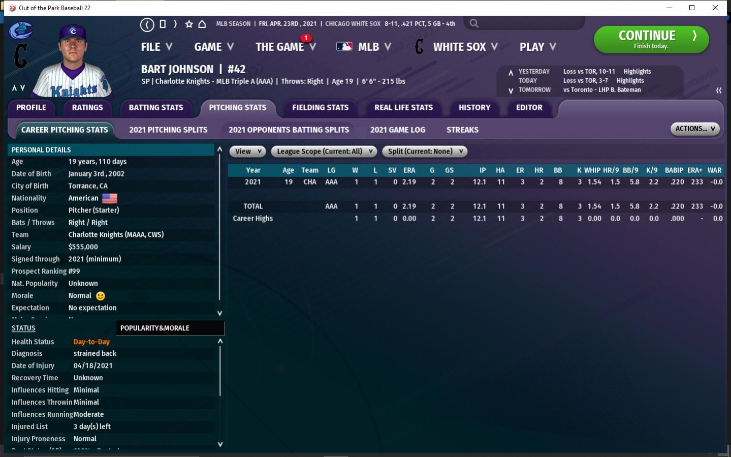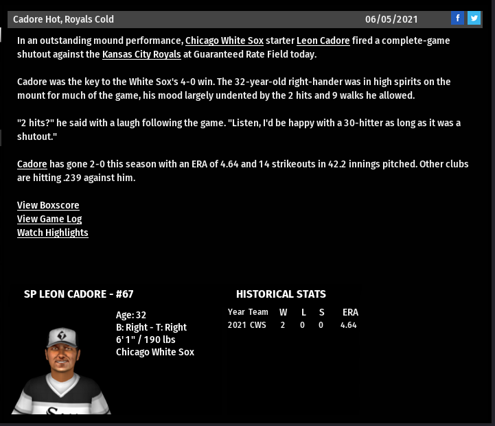 Here is the 2021 White Sox. I will post Sox news. I will post ASG standings and year-end for the 1st year. I think we will suck. I am also using a AAA so that the 5 players that don't make the OD roster can play and develop. Tony is fully in charge (for now) Edit: I edited JR to his age when he bought the Sox.