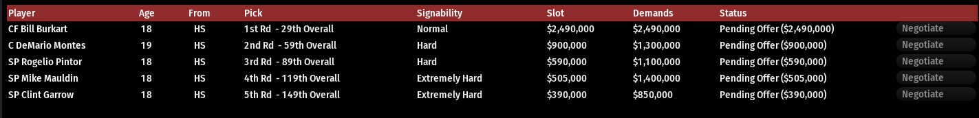 Only a 5 round draft for now. I will not negotiate beyond the initial offer to all draftees. All draftees will eventually be traded for former Sox or cash.