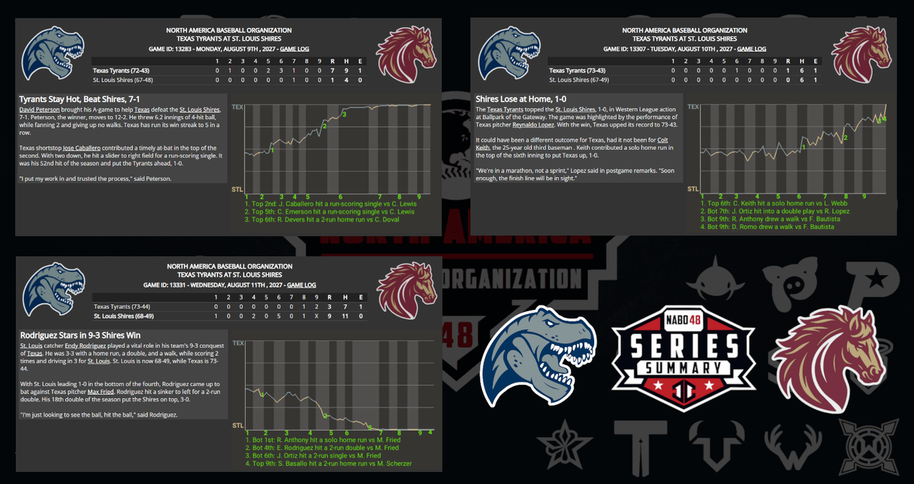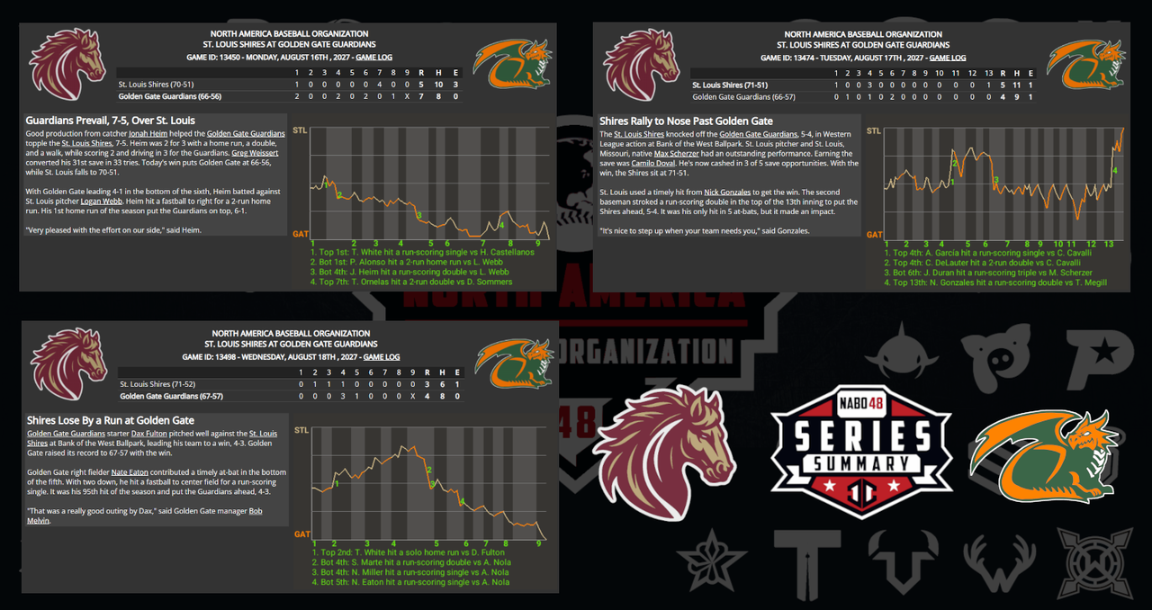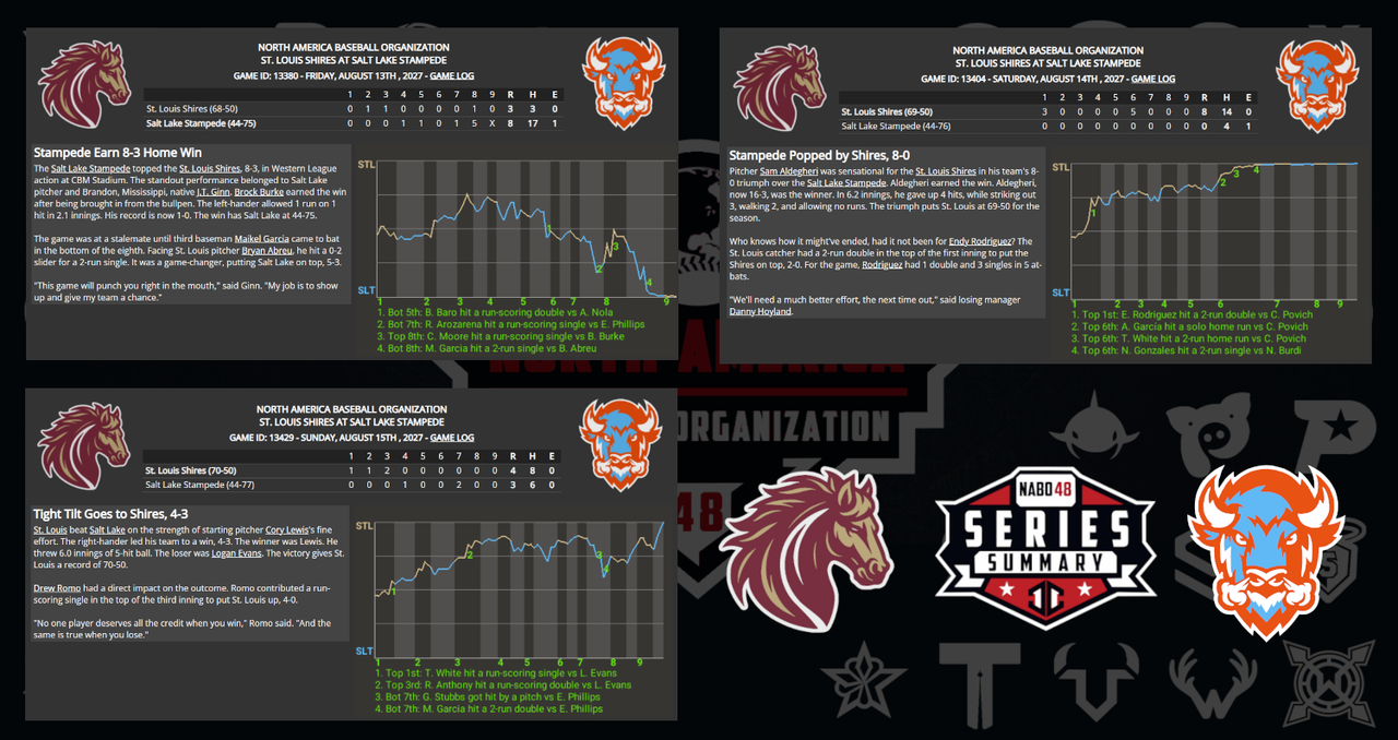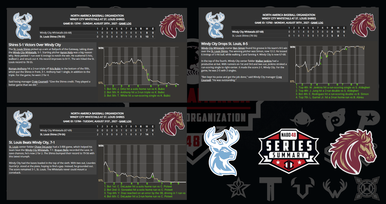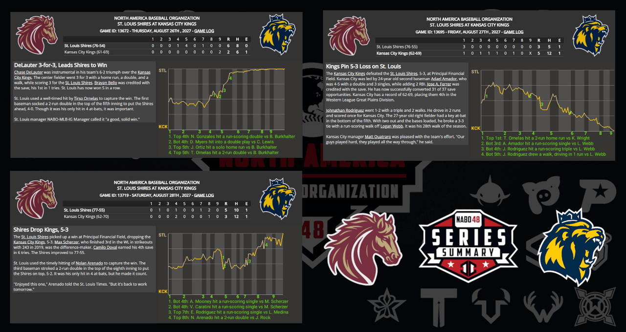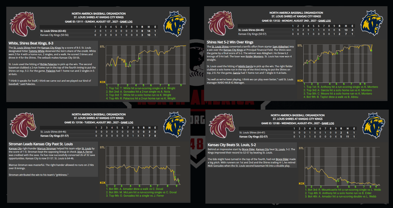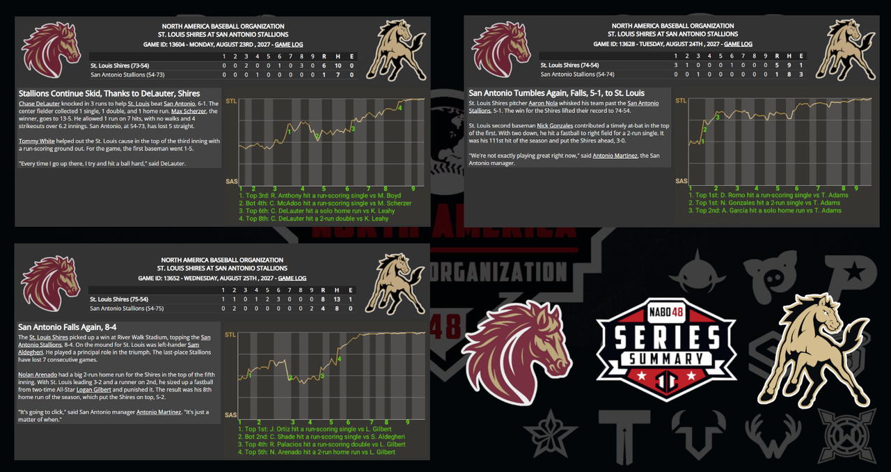 ![]() ![]() Missing Graphic: StL Sweeps Mile High: 7-3, 10-0, and 5-4 |
