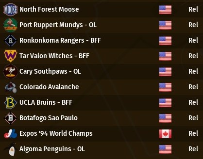 A 12-5 record in the final month (1 shy of the Warriors total games!) wasn't quite enough for Silly to claw their way back to the top. Just Babel and Silly into the playoffs, but a whopping 6 teams relegated. I'd say that Seattle and Waffletown were particularly unfortunate. For the Kauff Award, I've gone with Silly's George Brett and his 116 RBI, over Coney Island's higher WAR Luke Appling. For the True Award, Babel's Greg Maddux led in Wins (20), ERA (1.90), WHIP (0.99), BB/9 (1.1), and by a long way with 10.1 rWAR. Good luck to Babel and Silly in the playoffs! |