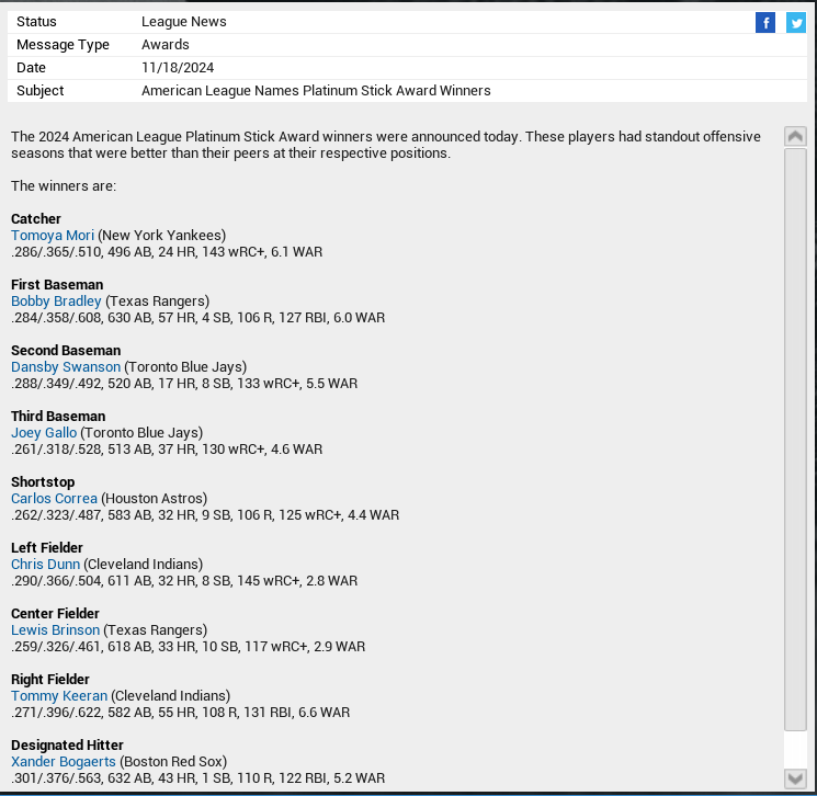 Awards season sees Sharpe take home AL CY again and Keeran AL MVP.
