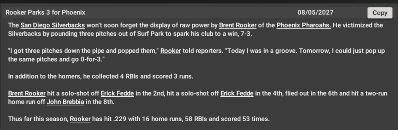 ![]() ![]() ![]() ![]() PITCHER - GAME SCORES