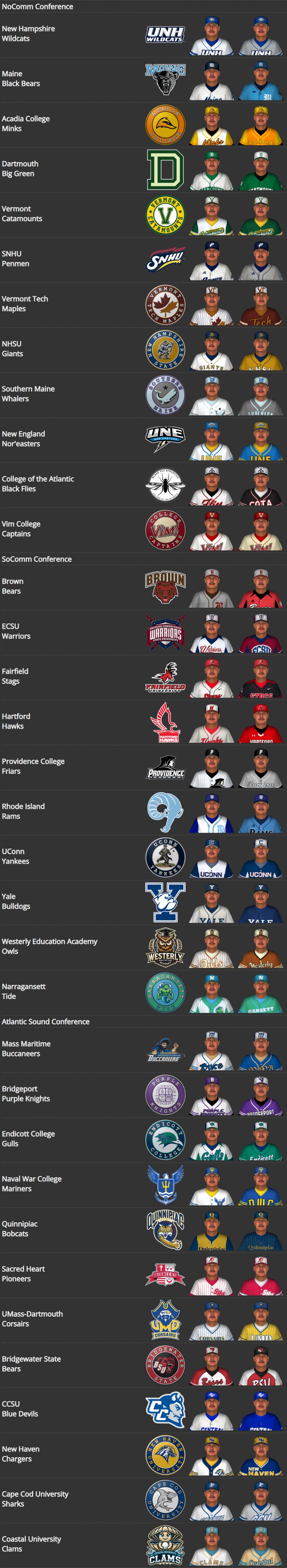 BNN Report News from the CBO, Minors, CCBL, and CYL by Nat Wright-Kawolski 7 November 2316 CYL Now a League of 132 The Commonwealth Youth League has welcomed 16 more teams and two new divisions, the North Region's Etahn Allen Division and the South Region's Thomas Mayhew Division. Most of the new teams joined the new divisions, but there were some movements and four teams joining pre-existing divisions in the NR's Longfellow Division and the SR's Bradberton Division. Teams joining the NR's Longfellow Division are the Ogunquit Trolls and the Old Orchard Sandstalkers. In the Bradberton Division, the new teams are the Pittsfield Festies and Lee Aisons. New members of the Allen Division are the Bennington Zappers, Wilmington Snowmounts, Brattleboro Banshees, Keene Quills, North Adams Miners, and Greenfield Glowcaps. The Manchester Rocketeers and Nashua Zoologists also joined the Allen Division. Both of those teams were in the W.E.B. DuBois Division in 2316. In the Mayhew Division, the teams joining are the Nantucket Marsh Hawks, Martha's Vineyard Fleet, Naushon Island Radsharks, Falmouth Cool Beans, Oak Bluffs Hoppers, and Marion Howlers.The New Bedford Whales and Wareham Comets moved from the Crispus Attucks and Samuel Morse divisions, respectively, to joing the Mayhew. The Sherwood Manor Sasquatch are now going by the town name of Enfield (CT) Sasquatch. The Brown Bubblers ceased operation out of the Brown University campus because of the university's expanded higher education offereings in Providence and a new state-of-the-art facility being built near Murray Stadium. Players for the Bubblers joined the Woonsocket (RI) Orphans for the 2317 season. Models of all teams' logos and uniforms below.