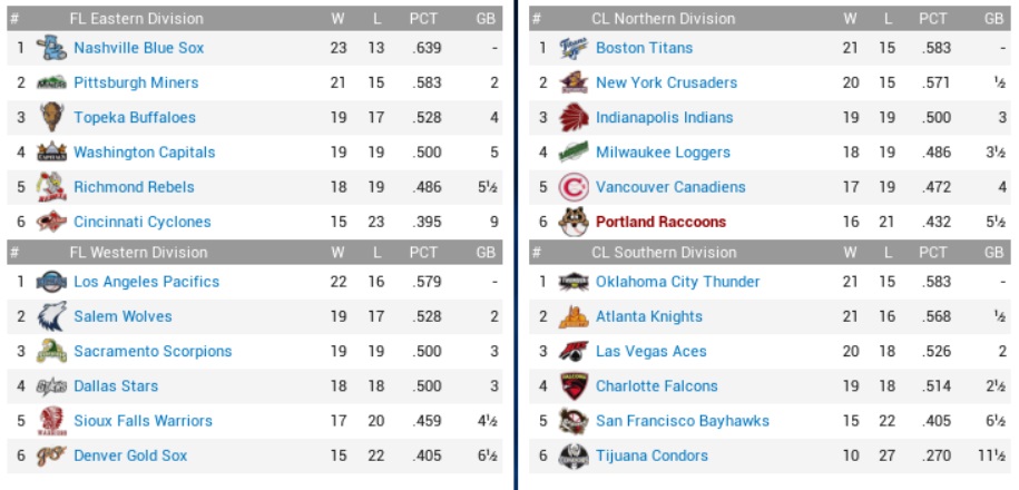 Raccoons (8-10) @ Thunder (10-8) – April 23-25, 2058