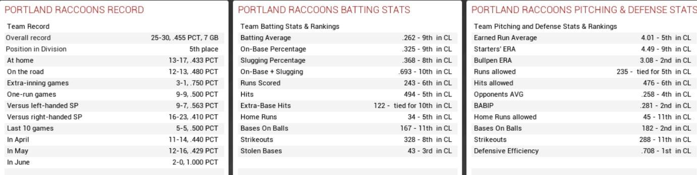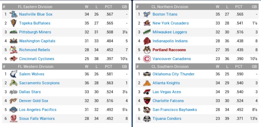 Raccoons (32-42) @ Aces (39-36) – June 24-26, 2058