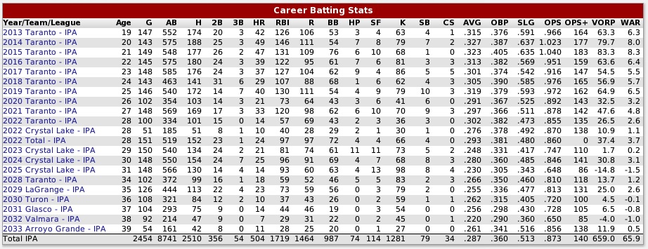 While I work on updating the rosters for the 2052 season, I thought you might like to see the all-time IPA Leaderboards.