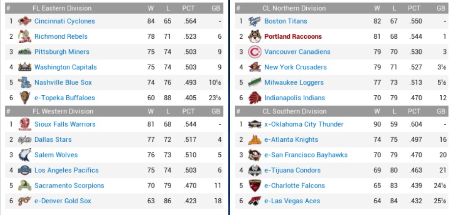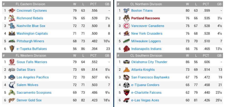 Raccoons (81-68) vs. Bayhawks (70-79) – September 17-19, 2068