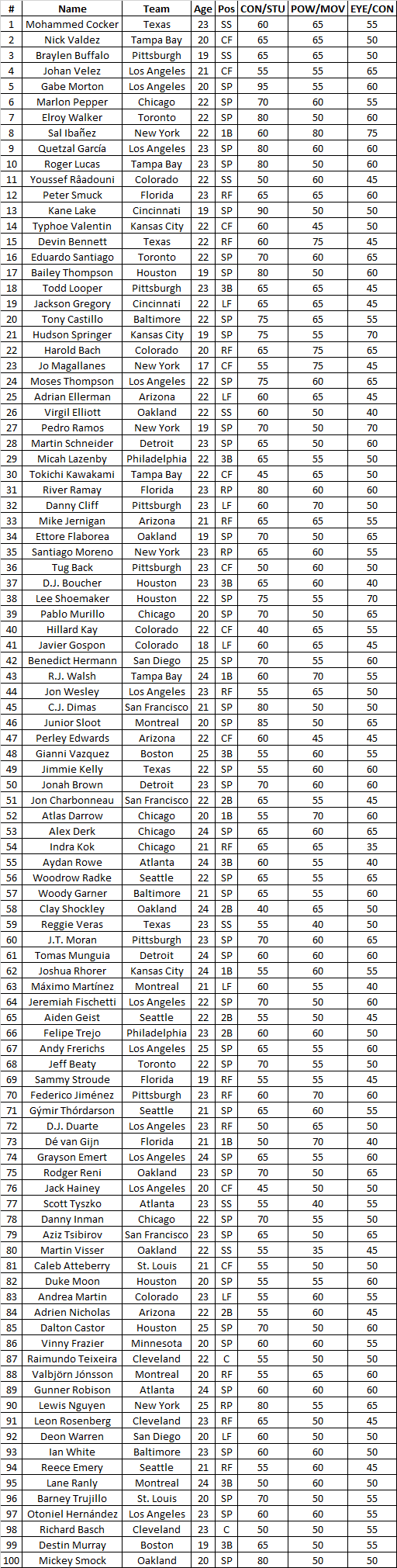 Mohammed Cocker is now the top prospect in baseball, while the top pitcher - Gabe Morton - is listed at number 5 overall. |
