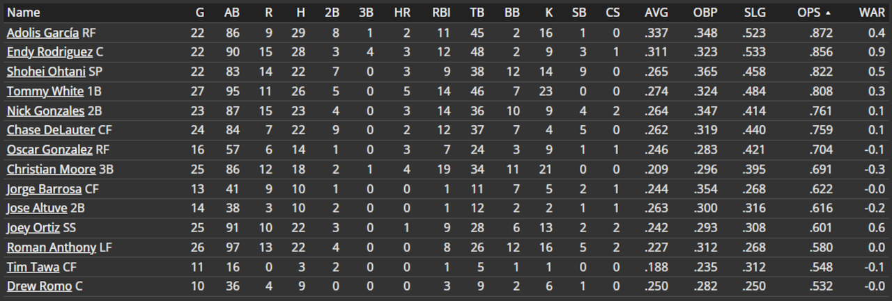 STARTING OUTFIELDERS AND DH ...