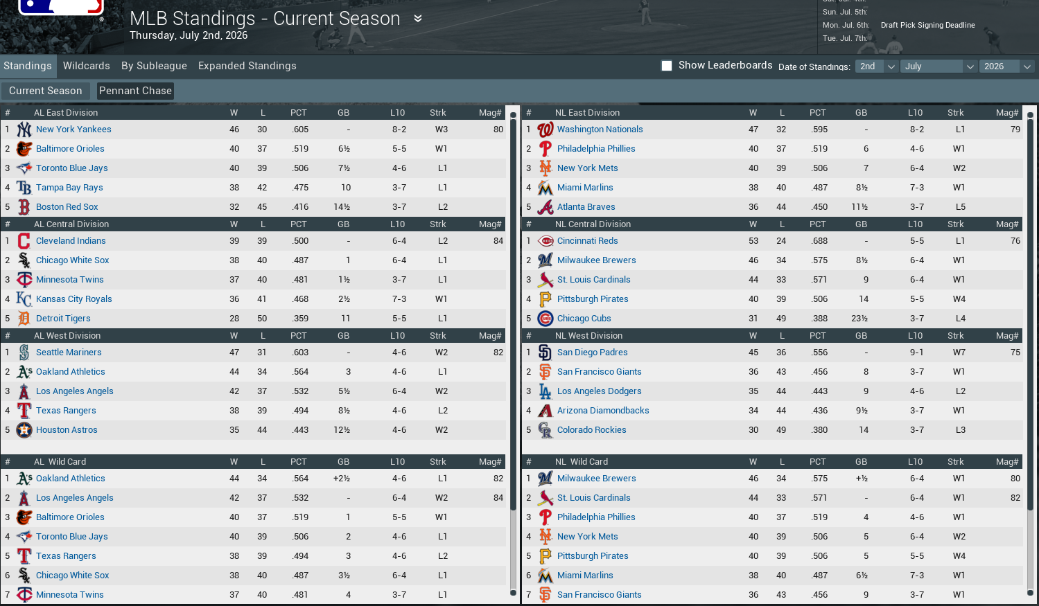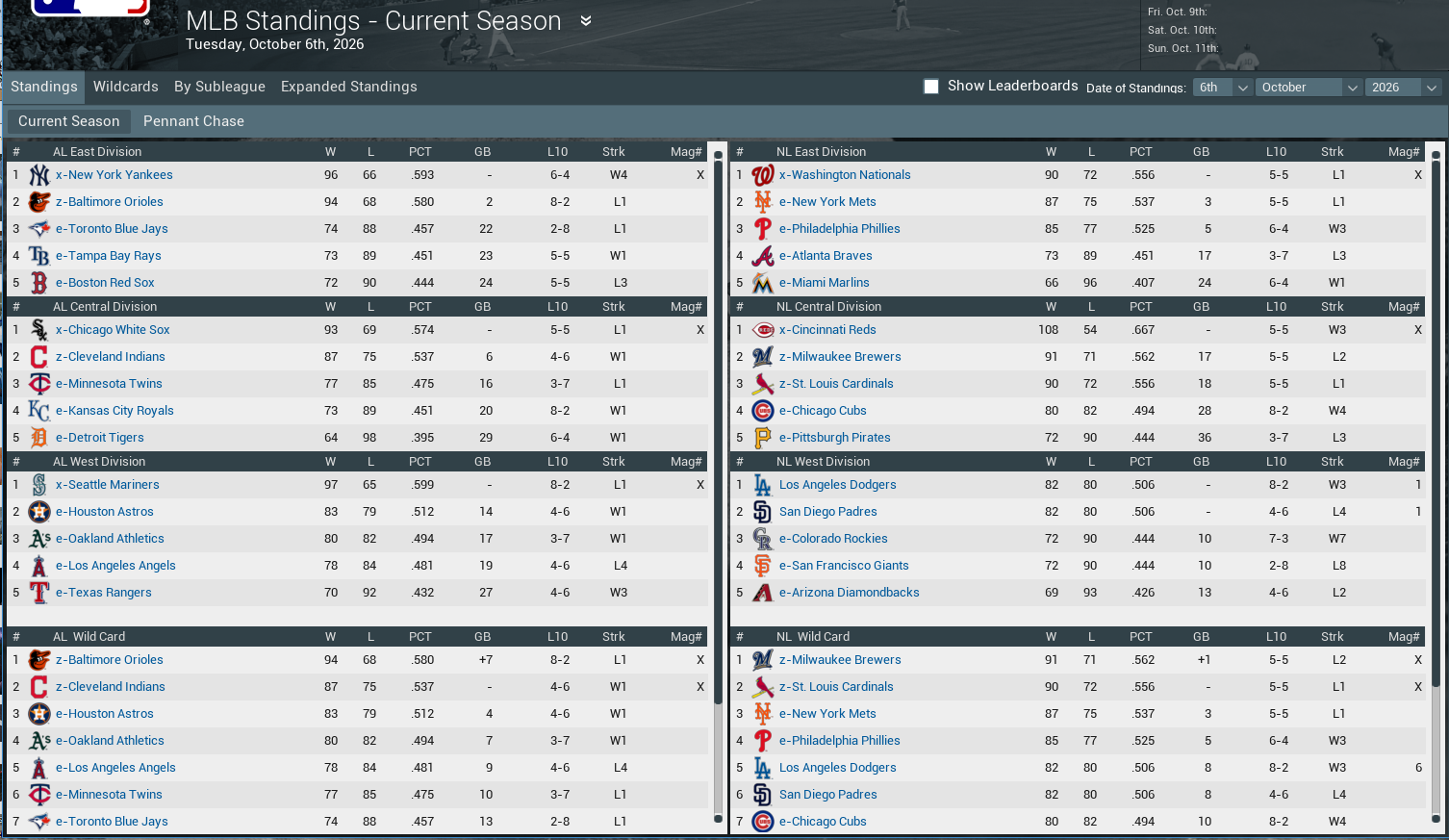 Notes: Keeran comes back, but suffers intercostal strain and goes down for the regular season. His milestones will have to wait till 27 Staples wins NL batting crown King makes headlines and has a rock solid year Philly fades though and is out of the playoffs Cincy cruises in The Cards get in wildcard Cleveland grabs a wildcard as well |