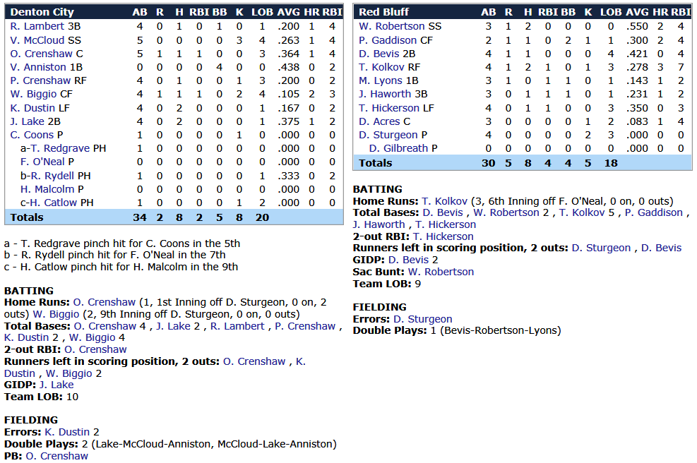 2057 Tycobbian Division Championship Series: Game 5 at Red Bluff Park