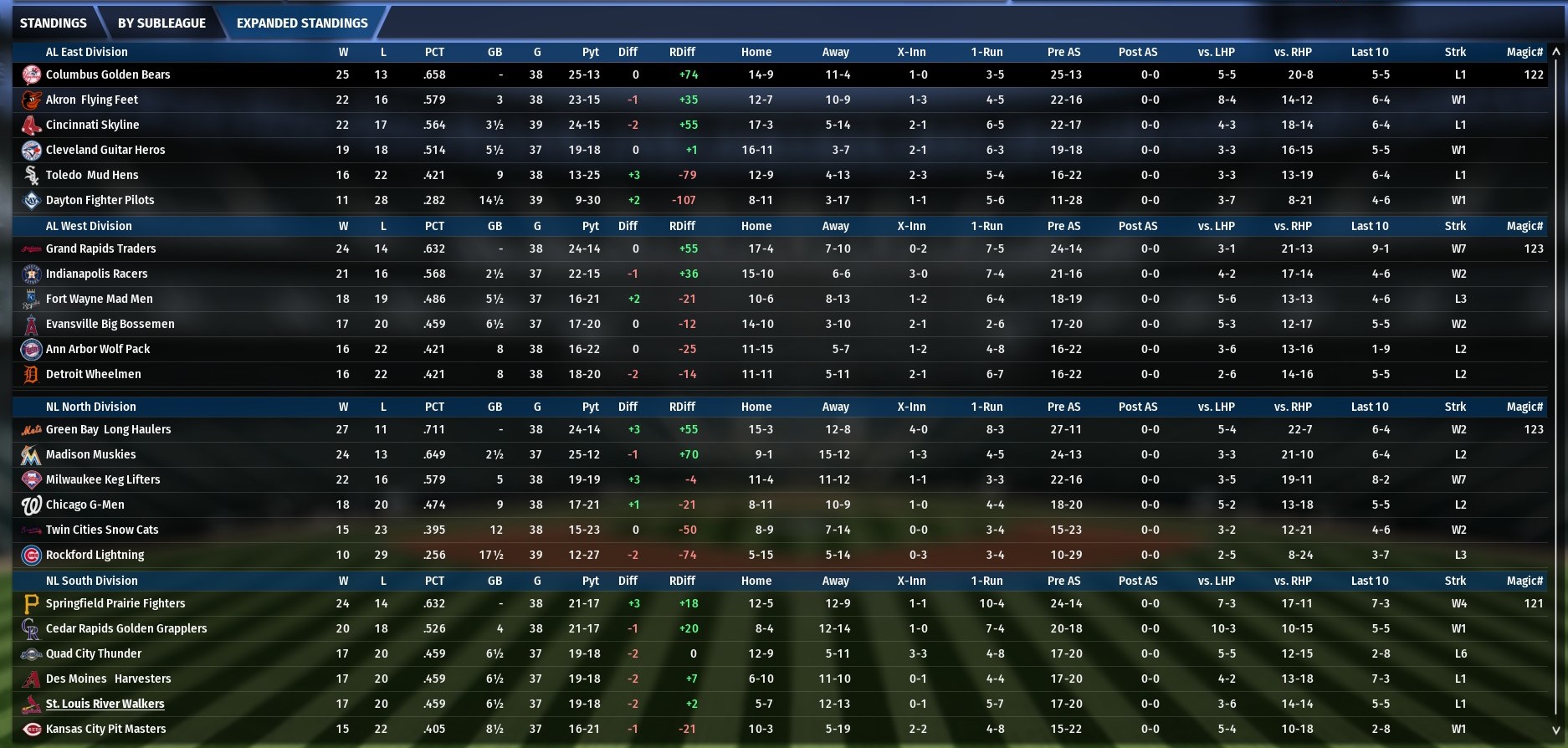 Down 4-3, Milwaukee scored twice in the top of the sixth inning to help carry it to a 6-4 win over St. Louis at Busch Stadium (1997). It all came down with two outs. Clint Frazier singled with one out off River Walkers starting pitcher Luiz Gohara. A walk to Kyle Seager followed by an Addison Russell single, which scored Walker. A pinch-hit single from Juan-Antonio Gomez then loaded the bases. Phil Maton came on in relief for Gohara, but Austin Hedges hit a single. Seager scored but Russell was thrown out at the plate to end the inning. The Keg Lifters added an insurance run in the eighth on a lead-off homer by Frazier off Bobby Poyner. Greg Bird hit a pair of homers for the Lifters, a two-run shot in the first and a solo blast in the third, both off Gohara. The Lifters pulled out all the stop sending eight pitchers to the mound. Starter Sean Hellje handled the first 3.2 innings, allowing four runs on five hits, before leaving with an undisclosed injury. Sean Wymer wrapped up the fourth and tossed a scoreless sixth to earn his first win of the season. Arquimedes Caminero was the last of the Milwaukee pitchers to take the hill. He sent St. Louis down in order in the ninth for his 16th save. Last edited by rink23; 04-08-2019 at 03:19 PM. |