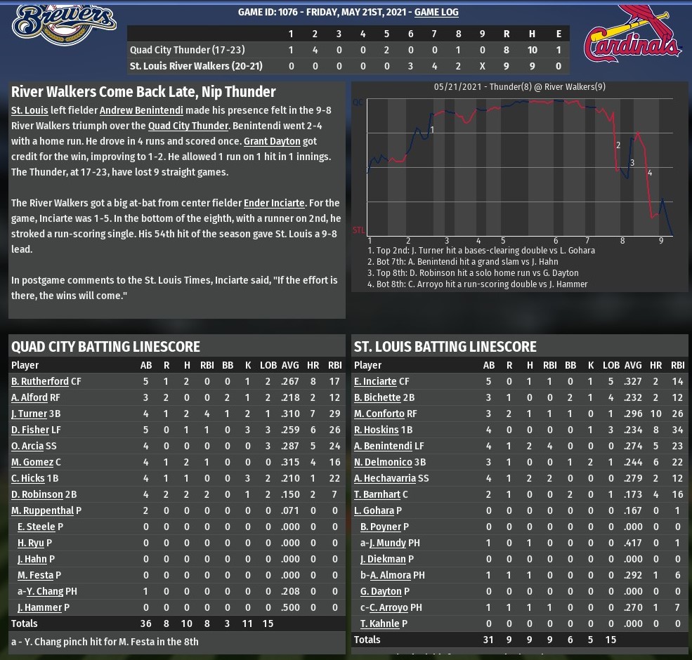Walkers news: May 21 -- St. Louis 9, Quad City 8