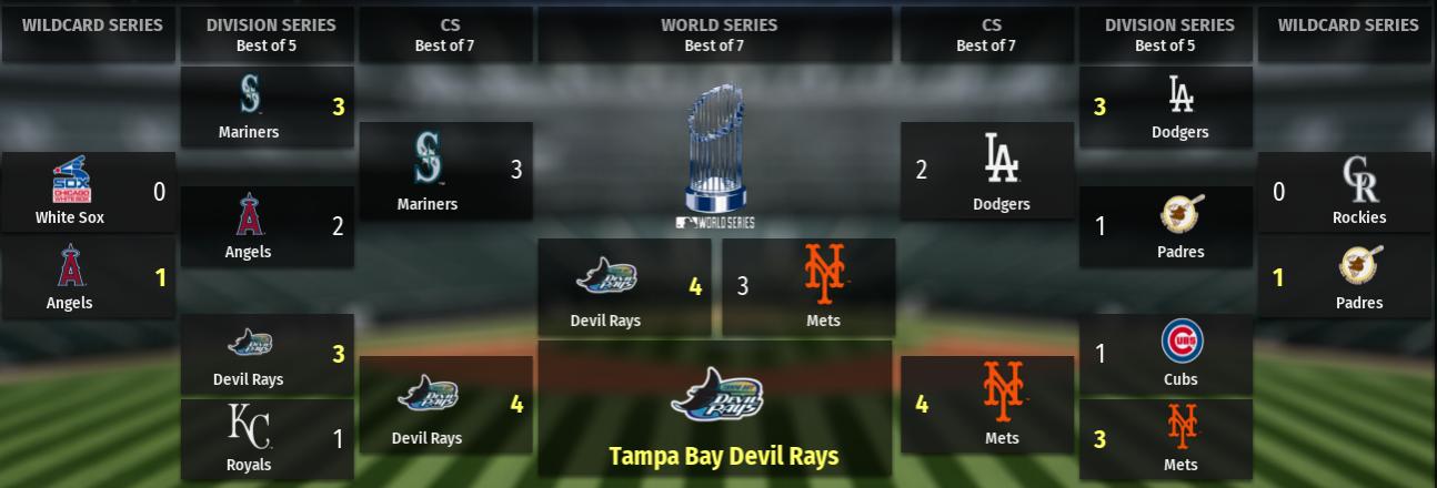 AL MVP: Parker Alvey, RHP, Tampa Bay Devil Rays (2) - 8.7 WAR, 66 FIP-, 2.9 K/BB NL MVP: Johan Velez, CF, Los Angeles Dodgers (3) - 6.8 WAR, 140 wRC+, 9.0 ZR AL Top Pitcher: Parker Alvey, RHP, Tampa Bay Devil Rays (3) - 8.7 WAR, 66 FIP-, 2.9 K/BB NL Top Pitcher: Auggie Lee, RHP, Chicago Cubs (5) - 6.9 WAR, 79 FIP-, 2.7 K/BB AL Rookie of the Year: Marco Cooper, RF, Cleveland Indians - 5.0 WAR, 144 wRC+, 0.8 ZR NL Rookie of the Year: Zach Phillips, 1B, Arizona Diamondbacks - 3.6 WAR, 118 wRC+, 15.7 ZR |