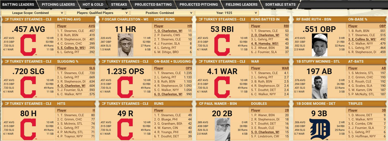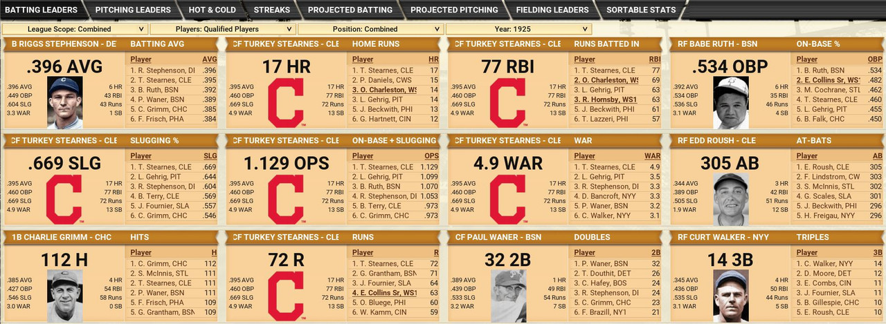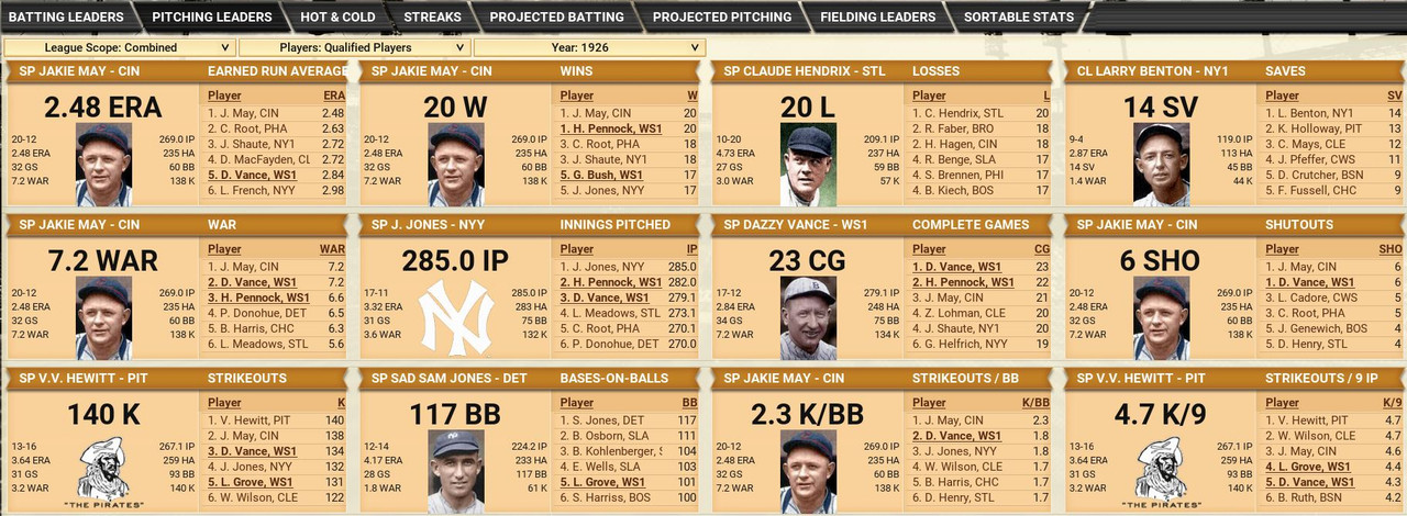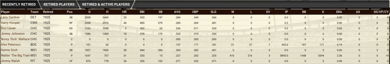 Retirements Walter Johnson is the big one ![]() Awards American League MVP Turkey Stearnes (Cleveland Indians) POY Dazzy Vance (Washington Senators) ROY Babe Herman (Chicago White Sox) National League MVP Babe Ruth (Boston Braves) POY Babe Ruth (Boston Braves) ROY Chino Smith (Brooklyn Robins) Draft ![]() Washington Draft