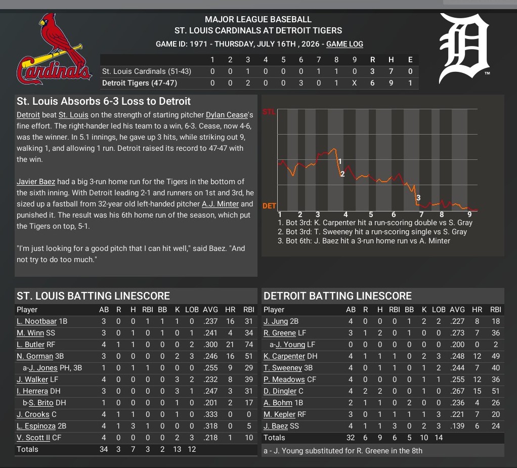 Cards news: July 15 -- Detroit Tigers 6, St. Louis Cardinals 3