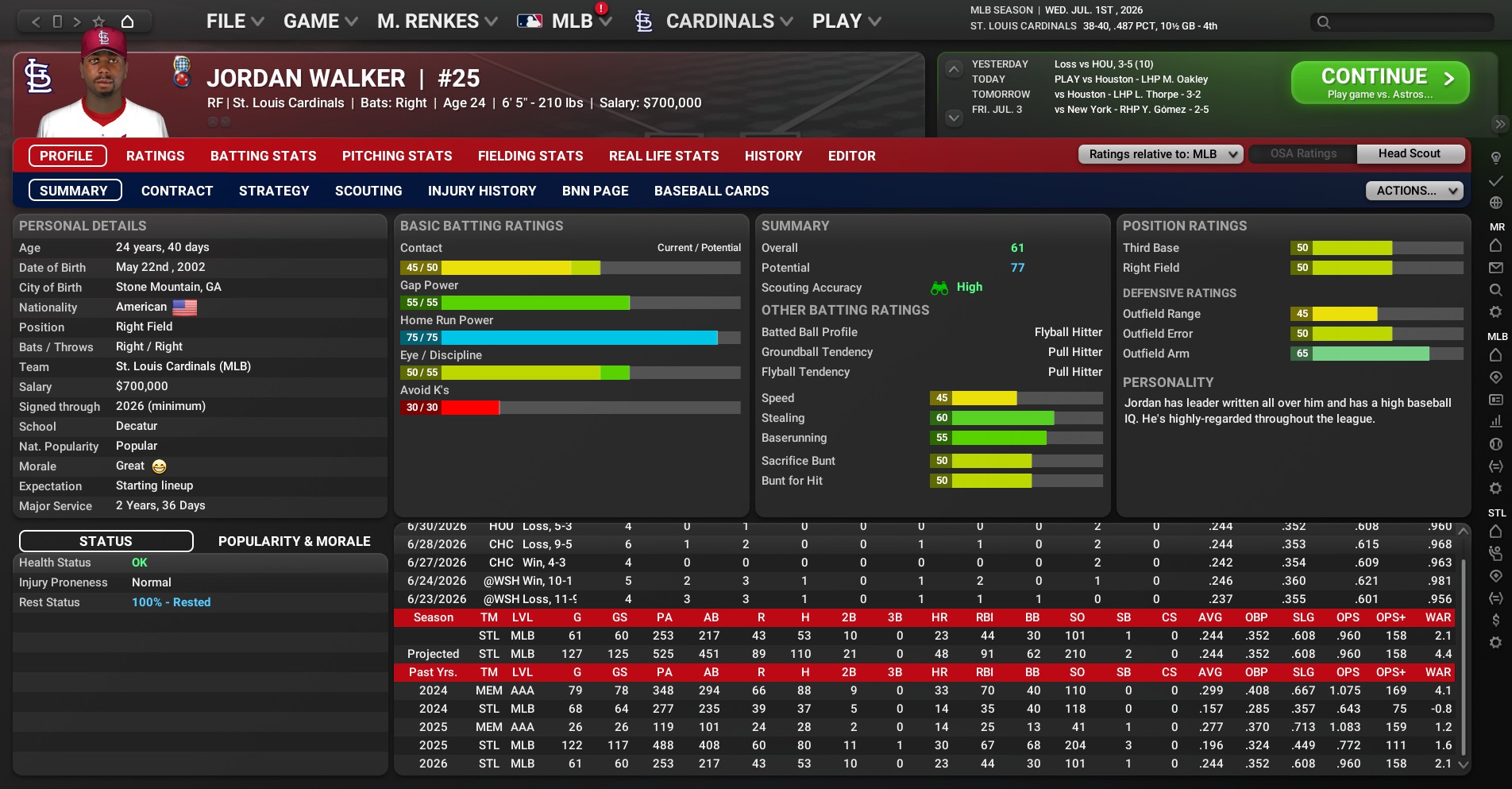 Player of the Month: Jordan Walker -- The 24-year-old outfielder hit .312 with 10 homers, 20 RBIs and 21 runs scored in 22 games. He got on base at a .402 clip and slugged .738.