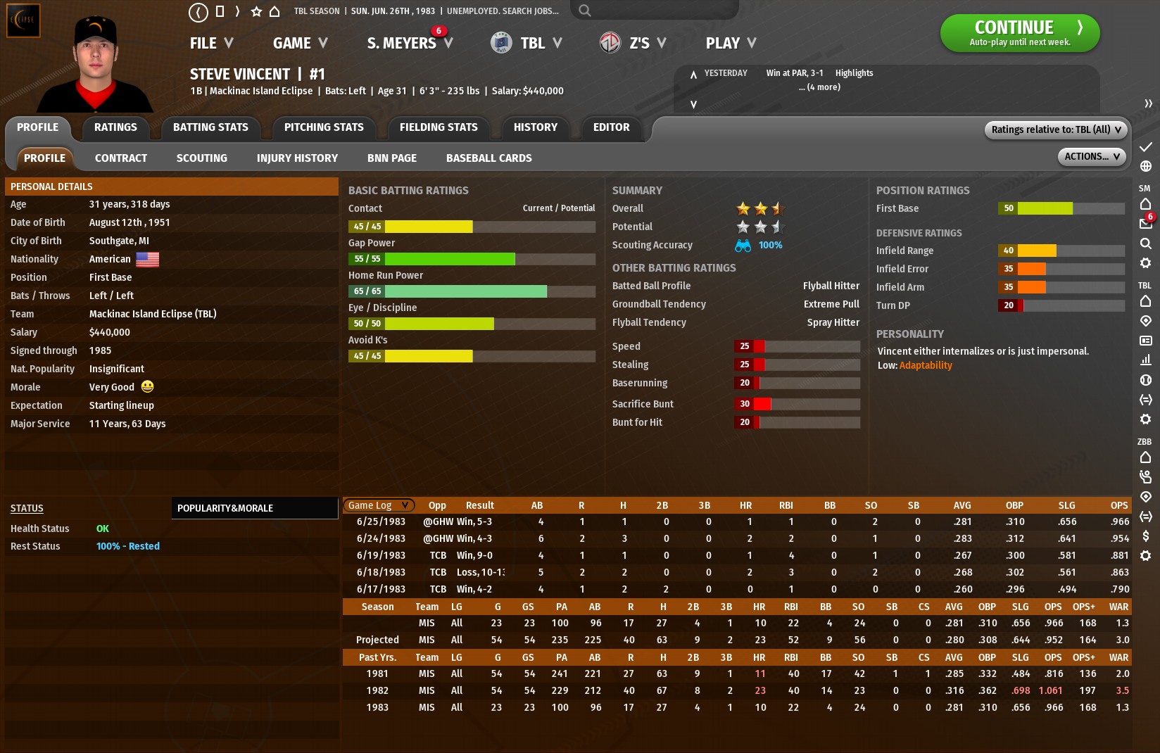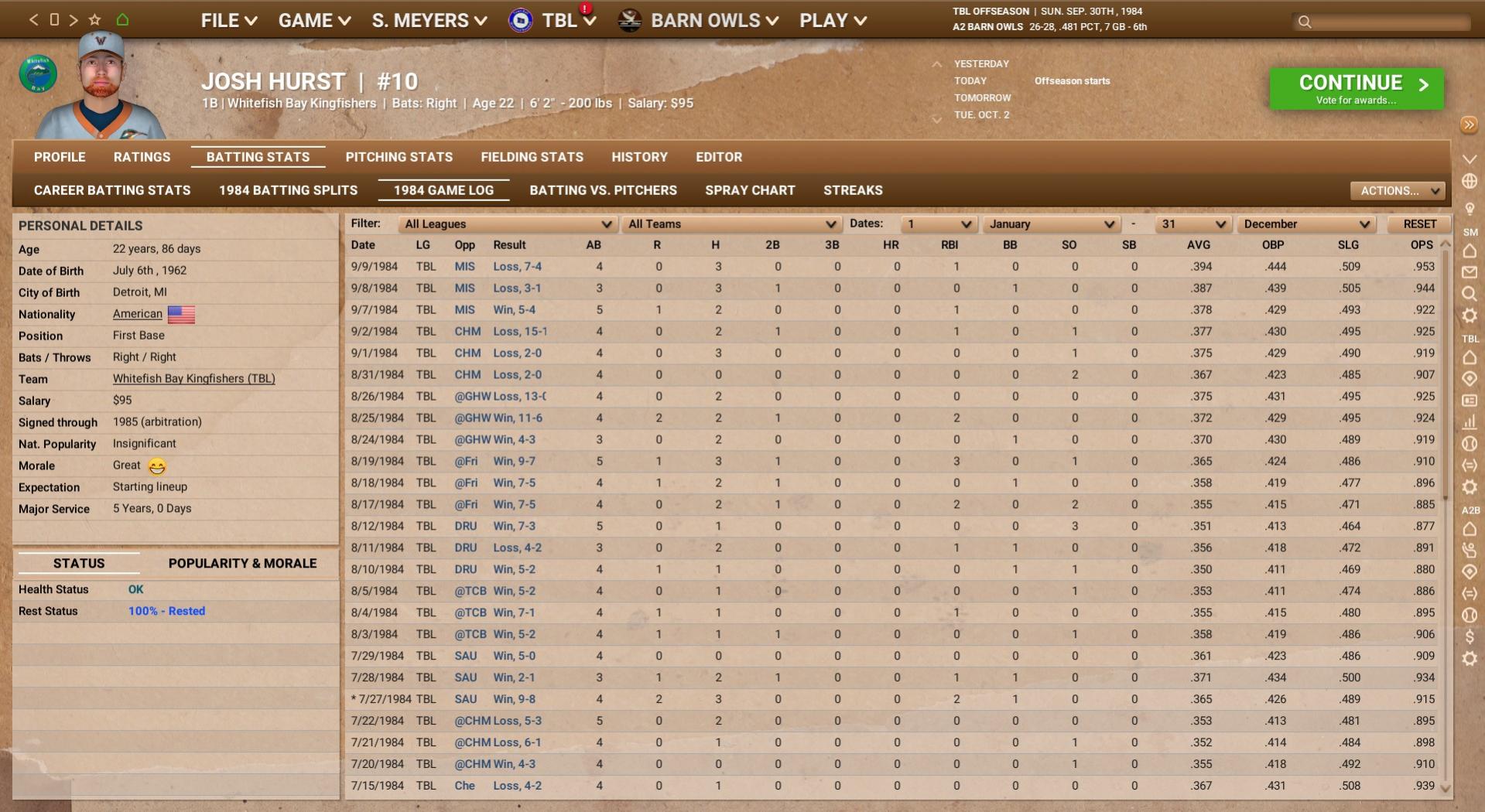 As a refresher from page 1, there are no trades in Michigan Town Ball, and there isn't an annual draft (a few may have been caught up in the A.I.'s web along the way).