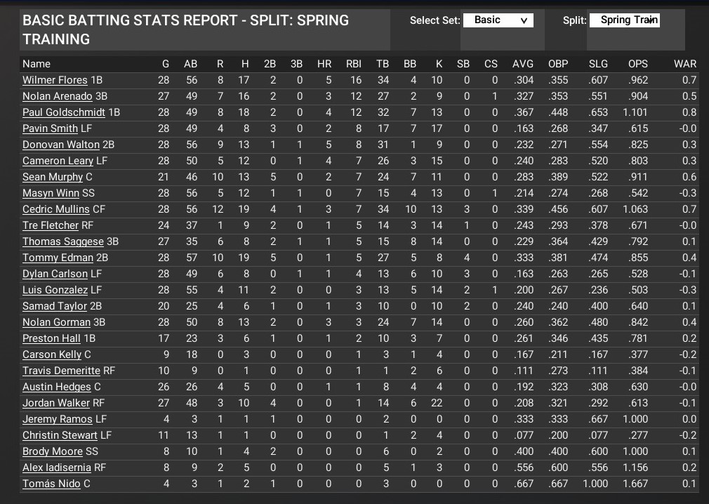 Cards news: March 23 -- Spring Training Week 4 - Team statistics