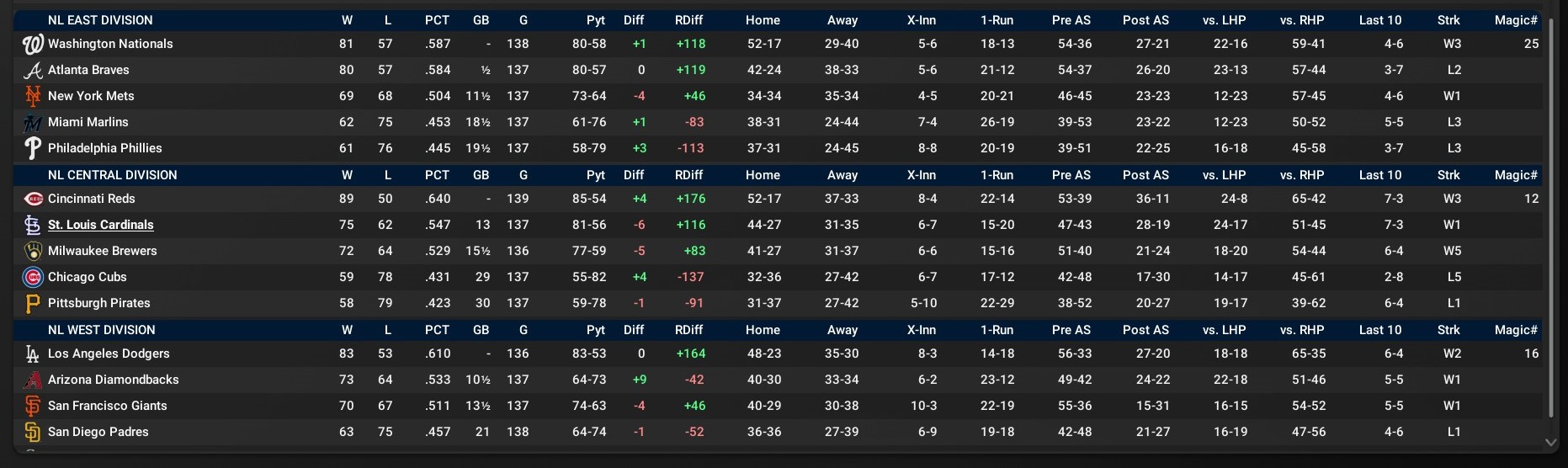 Record: 75-64, 2nd/Tied w. Milwaukee, 14.5 GB Cincinnati; Tied for 2nd in NL Wild Card