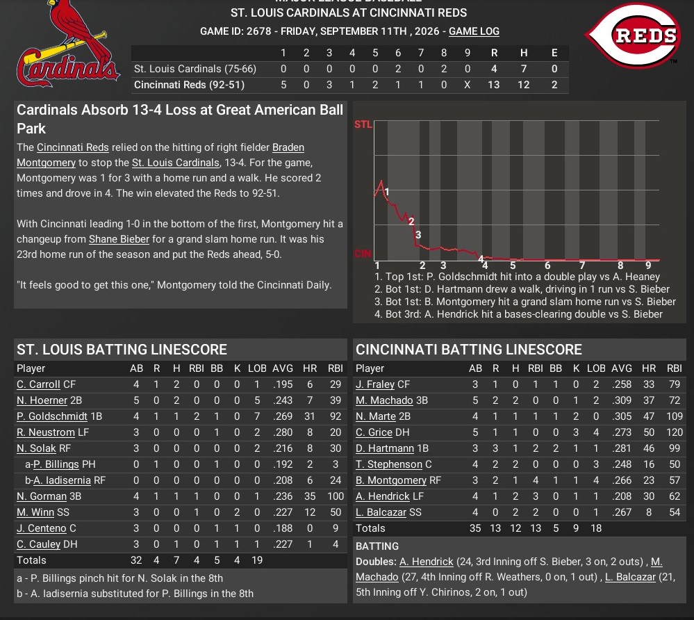 Cards news: Sept. 11 -- Cincinnati Reds 13, St. Louis Cardinals 4