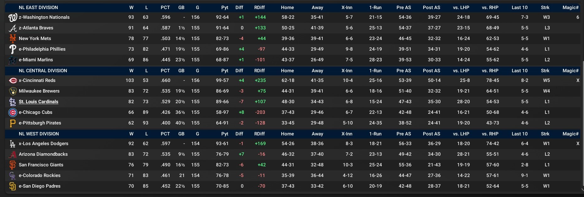 Record: 79-70, 2nd/(Tied/w. Milwaukee), 18 GB Cincinnati; Tied with Milwaukee for 3rd NL Wild Card